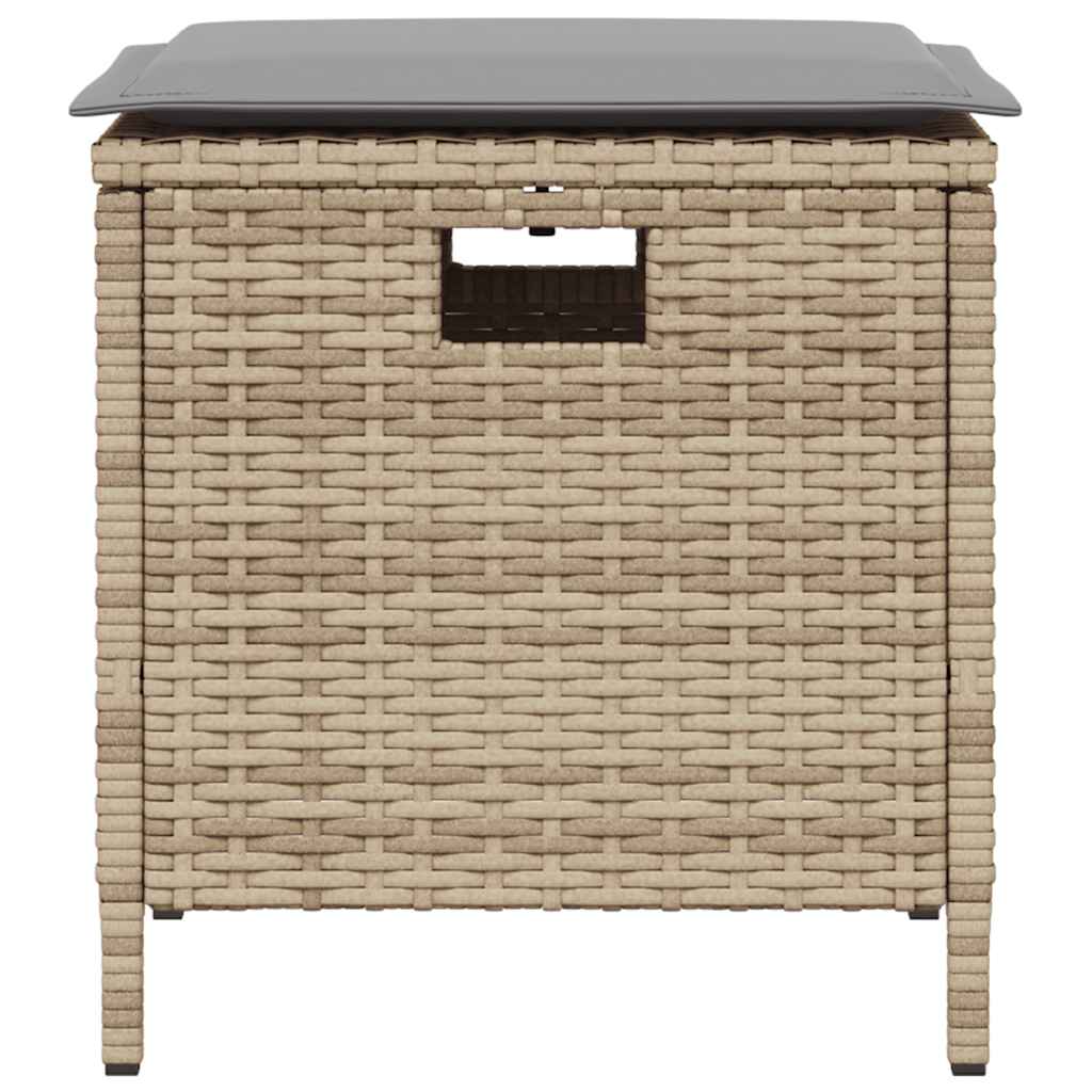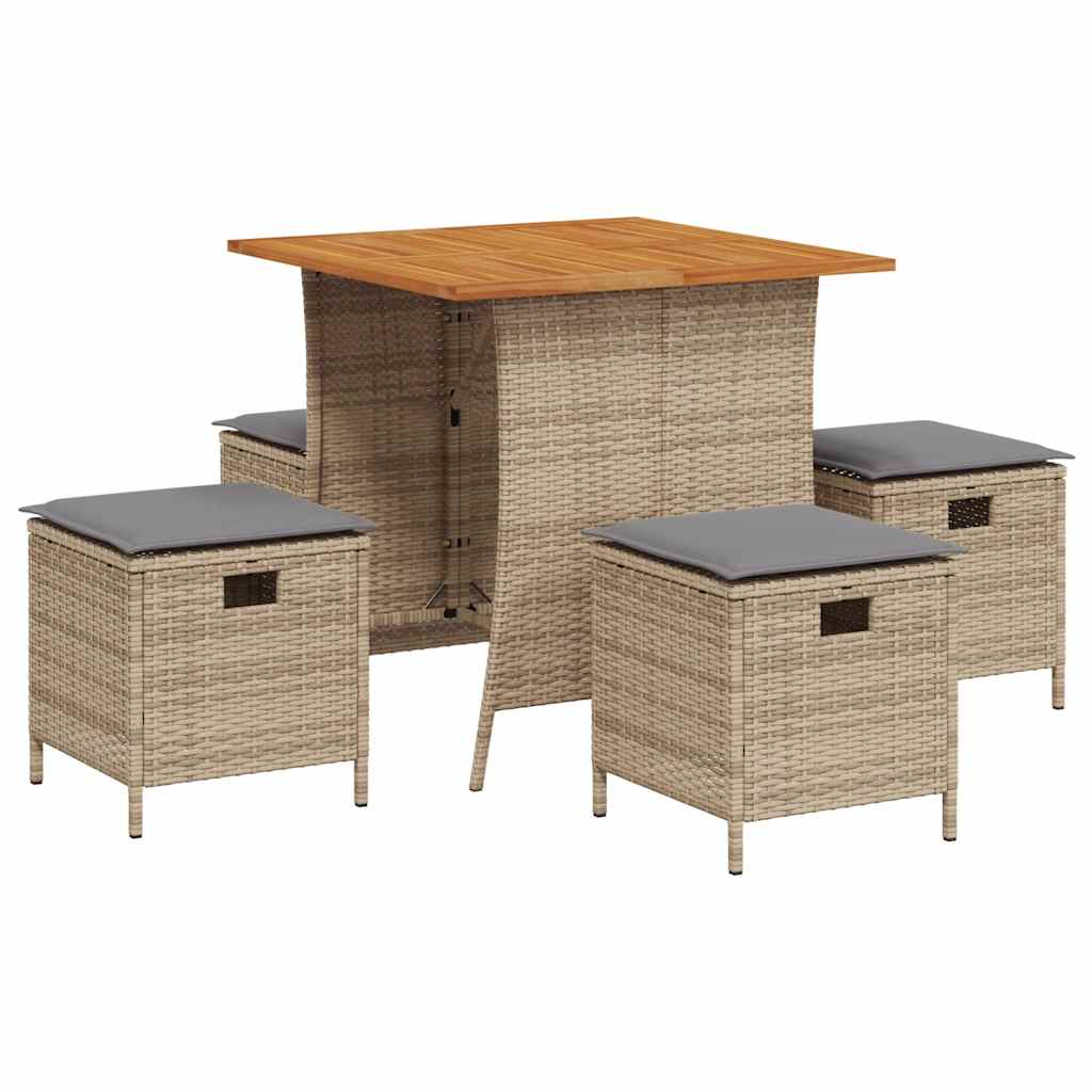 Diese Garten-Essgruppe ist eine ideale Wahl für Mahlzeiten im Freien oder einfach nur zum Entspannen im Garten, Hinterhof oder auf der Terrasse. Langlebiges Material: PE-Rattan, auch als Poly Rattan bekannt, ist ein robustes, pflegeleichtes synthetisches Material, das die Optik von natürlichem Rattan aufweist. Es kennzeichnet sich durch ein geringes Eigengewicht und lässt sich einfach reinigen. Aufgrund seiner Haltbarkeit und Witterungsbeständigkeit wird es häufig bei der Herstellung von Gartenmöbeln verwendet.Stabile und pflegeleichte Tischplatte: Dieser Gartentisch besitzt eine Tischplatte aus Akazienholz, die robust und langlebig ist und sich leicht mit einem feuchten Tuch reinigen lässt.Bequemes Sitzerlebnis: Dieser Gartensessel mit dick gepolsterten Kissen bietet ein angenehmes Sitzgefühl.Abnehmbarer und waschbarer Bezug: Diese Sitzkissen verfügen über abnehmbare Bezüge für einfaches Waschen und Pflegen.Praktisches Griffloch: Der Hocker verfügt über ein Griffloch auf jeder Seite, wodurch er leicht zu tragen und zu transportieren ist. Gut zu wissen:Wir empfehlen dir, deine Gartenmöbel mit einer wasserdichten Hülle zu schützen, um lange Zeit eine ansprechende Optik aufzuweisen.