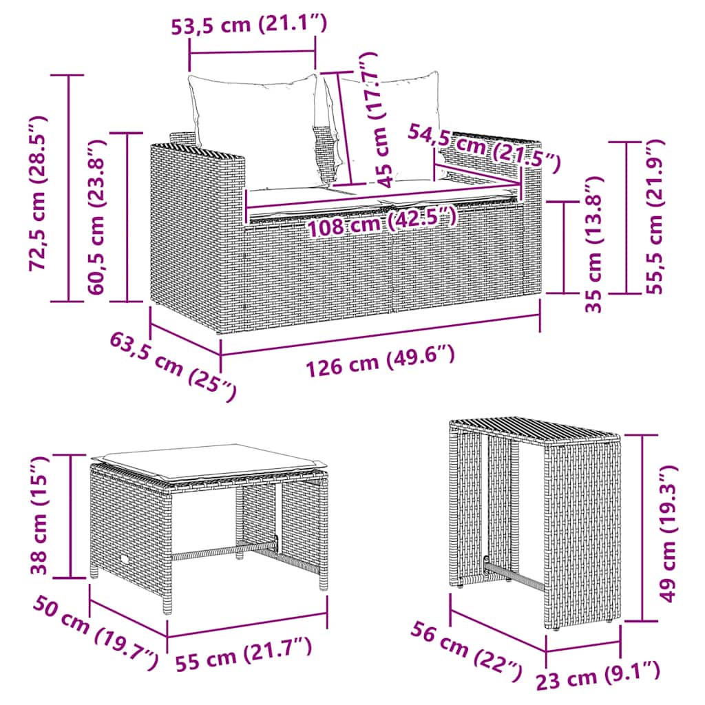 Diese Garten-Sofagarnitur ist die perfekte Ergänzung zu deinem Garten, deiner Terrasse oder deinem Innenhof. Sie bietet einen bequemen und einladenden Platz, um mit Familie und Freunden zu plaudern oder dich einfach nur zu entspannen und das Leben im Freien zu genießen. Langlebiges Material: PE-Rattan, auch als Poly Rattan bekannt, ist ein robustes, pflegeleichtes synthetisches Material, das die Optik von natürlichem Rattan aufweist. Es kennzeichnet sich durch ein geringes Eigengewicht und lässt sich einfach reinigen. Aufgrund seiner Haltbarkeit und Witterungsbeständigkeit wird es häufig bei der Herstellung von Gartenmöbeln verwendet.Bequemes Sitzerlebnis: Dieser Gartensessel mit dick gepolsterten Kissen bietet ein angenehmes Sitzgefühl.Abnehmbarer und waschbarer Bezug: Diese Sitzkissen verfügen über abnehmbare Bezüge für einfaches Waschen und Pflegen.Stapelbar und platzsparend: Diese Garten-Sofagarnitur lässt sich bequem zu einer kompakten rechteckigen Struktur stapeln. Dadurch lässt es sich leicht verstauen und ist ideal, um den Platz bei Nichtgebrauch optimal zu nutzen.Modulares Design: Dank des modularen Designs lassen sich die Gartenmöbel völlig flexibel und einfach umstellen, um deinen Außenbereich ganz individuell zu gestalten. Gut zu wissen:Wir empfehlen dir, deine Gartenmöbel mit einer wasserdichten Hülle zu schützen, um lange Zeit eine ansprechende Optik aufzuweisen.