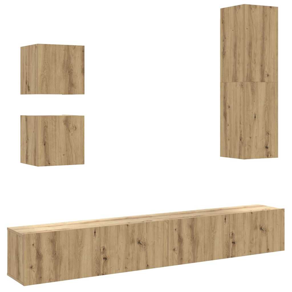 ARDEBO.de - 5-tlg. TV-Schrank-Set Wandmontage Artisan-Eiche Holzwerkstoff