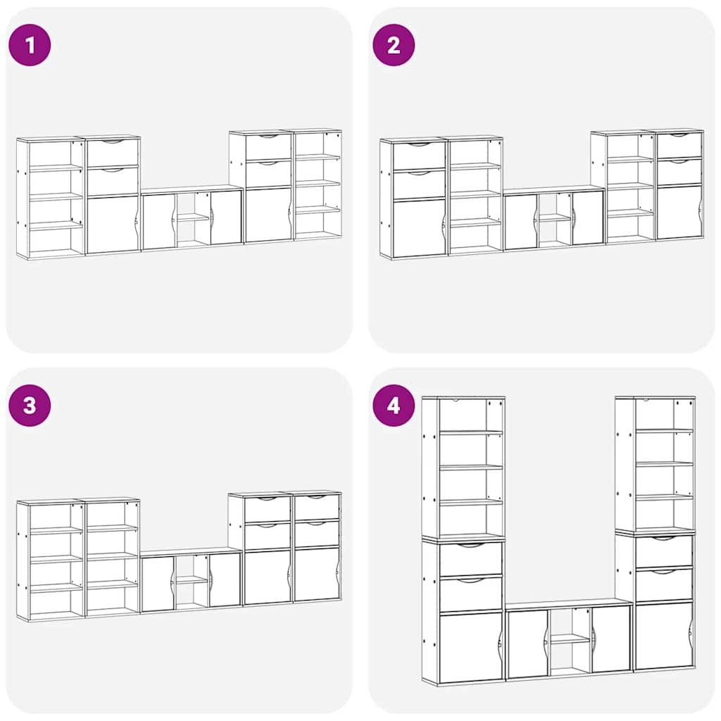 ARDEBO.de - 5-tlg. Wohnwand mit Stauraum ODDA Weiß Massivholz Kiefer