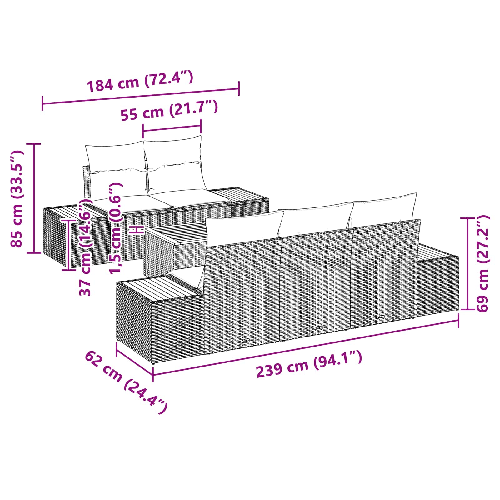 - Seat Depth: 60 cm