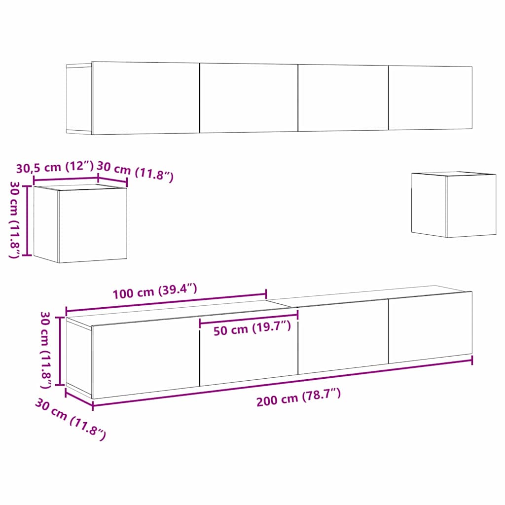 Gib deinem Wohnraum einen neuen Look mit dem vidaXL 6-teiligen TV-Schrank-Set. Es bietet einen schönen rustikalen Charme und praktisches Design. Dieses wandmontierte Schrankset ist perfekt zum Platzsparen, hat texturierte Oberflächen und einen soliden Aufbau aus Recyclingholz. Ideal für eine stylische Präsentation und praktische Aufbewahrung.