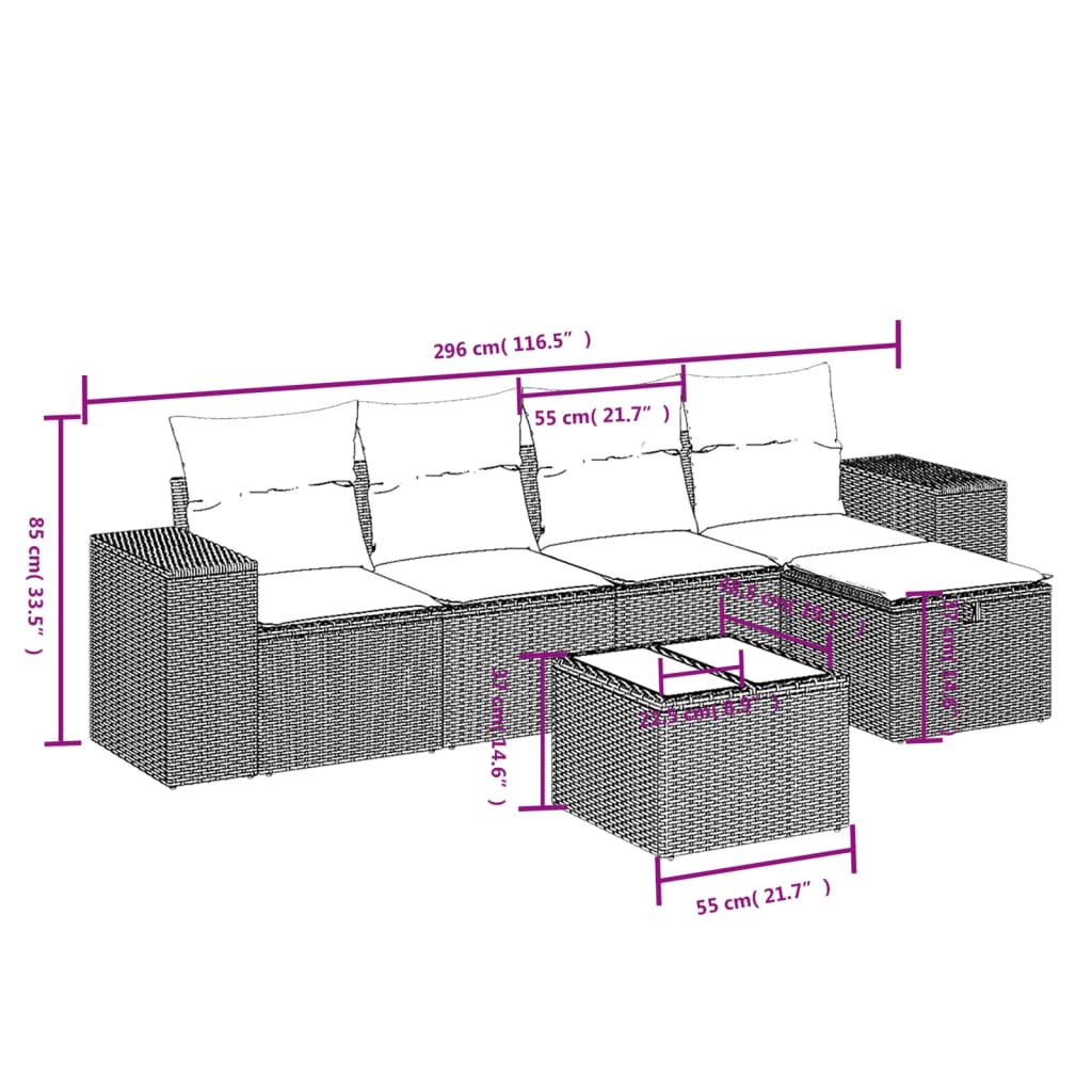 Diese Garten-Sofagarnitur ist die perfekte Ergänzung zu deinem Garten, deiner Terrasse oder deinem Innenhof. Sie bietet einen bequemen und einladenden Platz, um mit Familie und Freunden zu plaudern oder dich einfach nur zu entspannen und das Leben im Freien zu genießen. Langlebiges Material: PE-Rattan, auch als Poly Rattan bekannt, ist ein robustes, pflegeleichtes synthetisches Material, das die Optik von natürlichem Rattan aufweist. Es kennzeichnet sich durch ein geringes Eigengewicht und lässt sich einfach reinigen. Aufgrund seiner Haltbarkeit und Witterungsbeständigkeit wird es häufig bei der Herstellung von Gartenmöbeln verwendet.Tischplatte aus Glas: Die Tischplatte des Gartentisches besteht aus starkem und langlebigem Hartglas, sodass sie leicht mit einem feuchten Tuch gereinigt werden kann und deinem Außenbereich einen Hauch von Eleganz verleiht.Abnehmbarer und waschbarer Bezug: Diese Sitzkissen verfügen über abnehmbare Bezüge für einfaches Waschen und Pflegen.Robuster und stabiler Rahmen: Dank des pulverbeschichteten Stahlrahmens ist das Möbelstück robust, stabil und für den täglichen Einsatz im Außenbereich geeignet.Modulares Design: Dank des modularen Designs lassen sich die Gartenmöbel völlig flexibel und einfach umstellen, um deinen Außenbereich ganz individuell zu gestalten. Gut zu wissen:Wir empfehlen dir, deine Gartenmöbel mit einer wasserdichten Hülle zu schützen, um lange Zeit eine ansprechende Optik aufzuweisen.