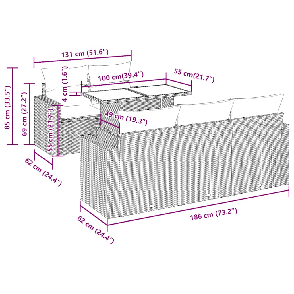 Diese Garten-Sofagarnitur ist die perfekte Ergänzung zu deinem Garten, deiner Terrasse oder deinem Innenhof. Sie bietet einen bequemen und einladenden Platz, um mit Familie und Freunden zu plaudern oder dich einfach nur zu entspannen und das Leben im Freien zu genießen. Langlebiges Material: PE-Rattan, auch als Poly Rattan bekannt, ist ein robustes, pflegeleichtes synthetisches Material, das die Optik von natürlichem Rattan aufweist. Es kennzeichnet sich durch ein geringes Eigengewicht und lässt sich einfach reinigen. Aufgrund seiner Haltbarkeit und Witterungsbeständigkeit wird es häufig bei der Herstellung von Gartenmöbeln verwendet.Stauraum mit wasserfestem Beutel: Jedes Gartensofa verfügt über ein Staufach unter der Sitzfläche, das mit einem wasserfesten Beutel zur Aufbewahrung von Kissen, Spielzeug und anderen Gegenständen versehen ist. Die Kissen sind mit Bezügen versehen und lassen sich mit Klettverschlüssen fest und sicher am Sofa befestigen.Verstellbare Tischplatte: Die Tischplatte lässt sich anheben, um den Gartentisch höher zu machen und ihn von einem Couchtisch in einen Esstisch zu verwandeln. Er eignet sich daher perfekt für Gäste oder Mahlzeiten im Freien.Abnehmbarer und waschbarer Bezug: Diese Sitzkissen verfügen über abnehmbare Bezüge für einfaches Waschen und Pflegen.Robustes und stabiles Gestell: Der pulverbeschichtete Stahlgestell ist stark, stabil, langlebig sowie korrosions- und wetterbeständig, um eine lang anhaltende Leistung zu gewährleisten. Gut zu wissen:Wir empfehlen dir, deine Gartenmöbel mit einer wasserdichten Hülle zu schützen, um lange Zeit eine ansprechende Optik aufzuweisen.