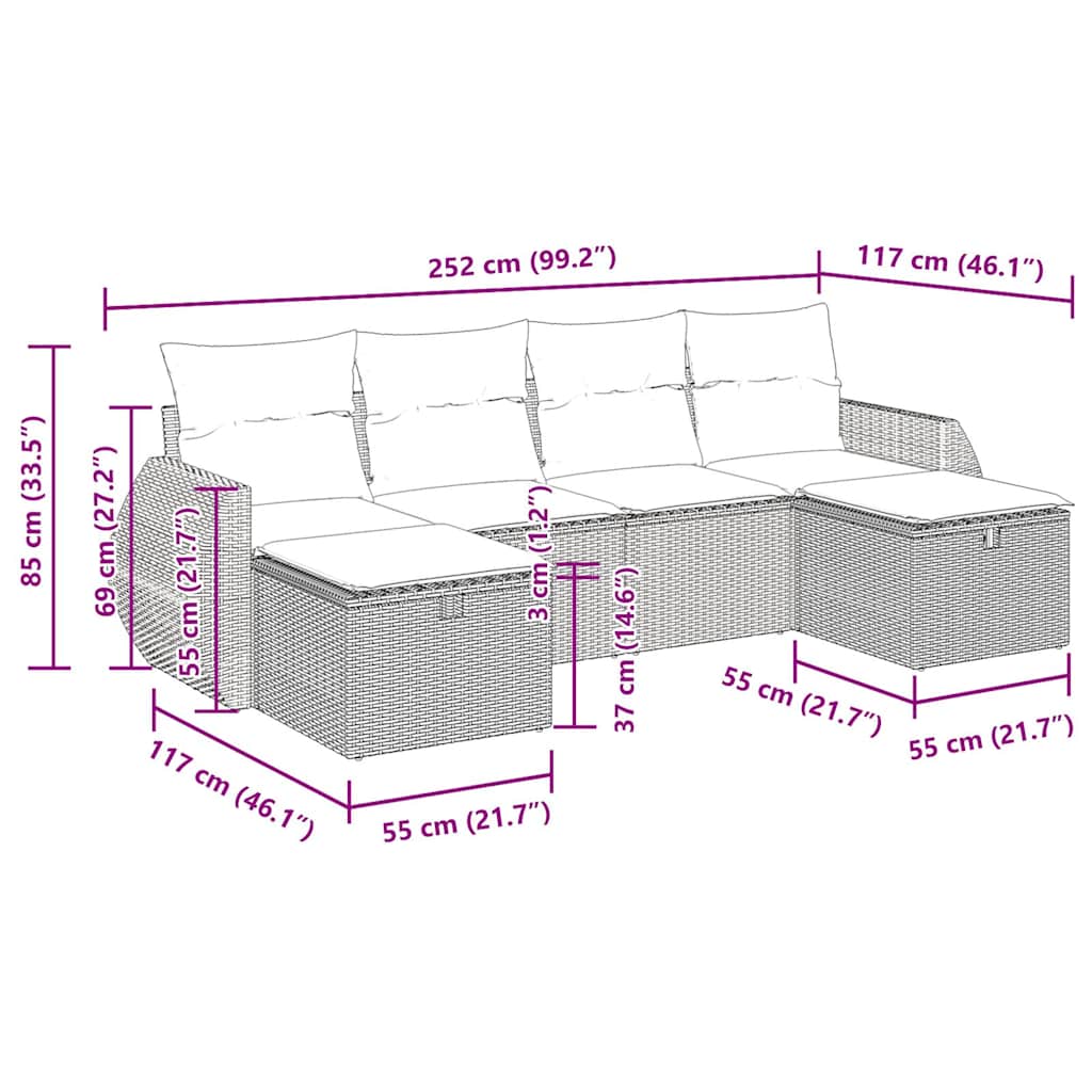 Diese Garten-Sofagarnitur ist die perfekte Ergänzung zu deinem Garten, deiner Terrasse oder deinem Innenhof. Sie bietet einen bequemen und einladenden Platz, um mit Familie und Freunden zu plaudern oder dich einfach nur zu entspannen und das Leben im Freien zu genießen. Langlebiges Material: PE-Rattan, auch als Poly Rattan bekannt, ist ein robustes, pflegeleichtes synthetisches Material, das die Optik von natürlichem Rattan aufweist. Es kennzeichnet sich durch ein geringes Eigengewicht und lässt sich einfach reinigen. Aufgrund seiner Haltbarkeit und Witterungsbeständigkeit wird es häufig bei der Herstellung von Gartenmöbeln verwendet.Stauraum mit wasserfestem Beutel: Jedes Gartensofa verfügt über ein Staufach unter der Sitzfläche, das mit einem wasserfesten Beutel zur Aufbewahrung von Kissen, Spielzeug und anderen Gegenständen versehen ist. Die Kissen sind mit Bezügen versehen und lassen sich mit Klettverschlüssen fest und sicher am Sofa befestigen.Vielseitiger Fußhocker: Der Hocker ist vielseitig einsetzbar und dient als bequeme Fußstütze beim Entspannen auf dem Sofa oder als zusätzlicher Sitzplatz in deinem Garten.Abnehmbarer und waschbarer Bezug: Diese Sitzkissen verfügen über abnehmbare Bezüge für einfaches Waschen und Pflegen.Robustes und stabiles Gestell: Der pulverbeschichtete Stahlgestell ist stark, stabil, langlebig sowie korrosions- und wetterbeständig, um eine lang anhaltende Leistung zu gewährleisten. Gut zu wissen:Wir empfehlen dir, deine Gartenmöbel mit einer wasserdichten Hülle zu schützen, um lange Zeit eine ansprechende Optik aufzuweisen.
