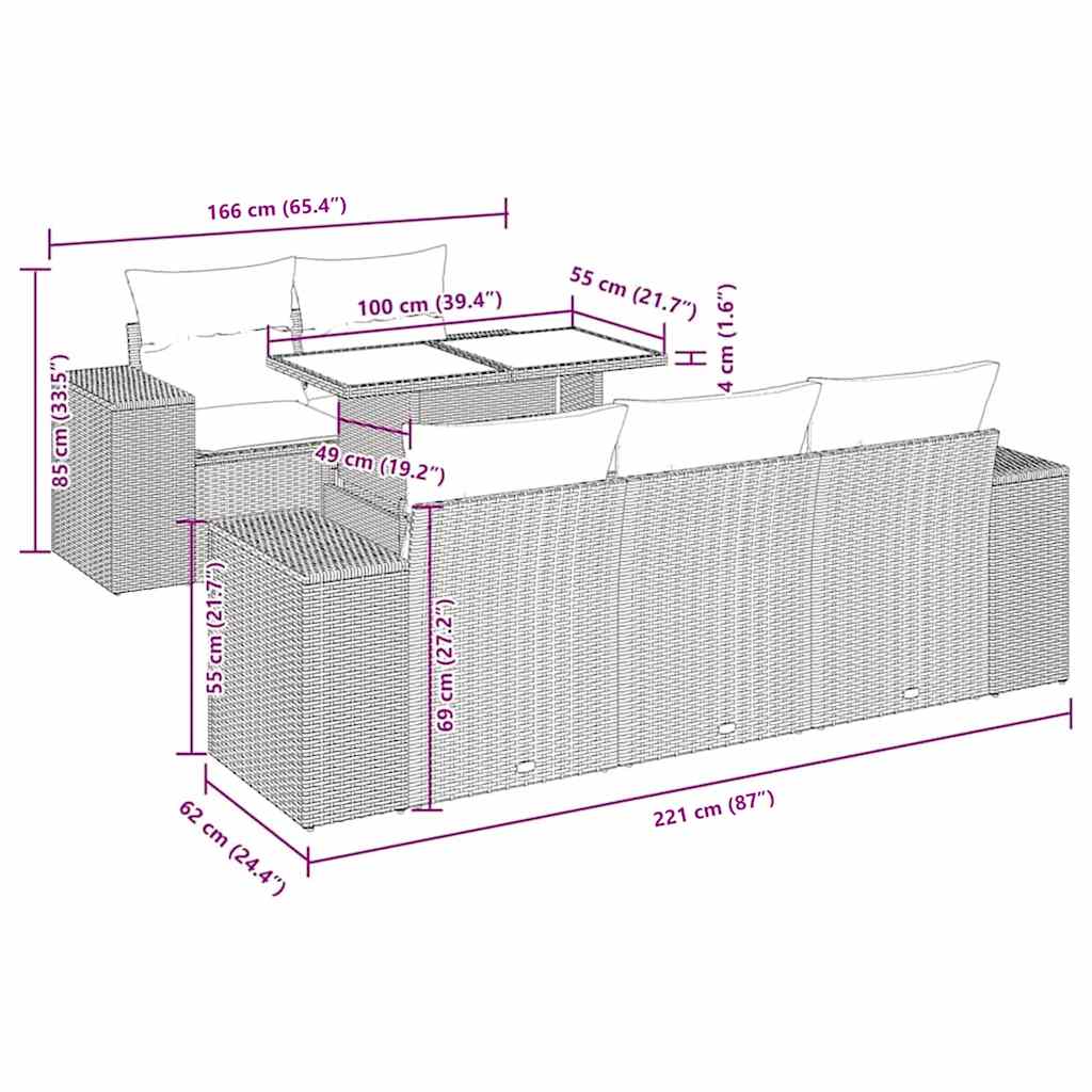 Diese Garten-Sofagarnitur ist die perfekte Ergänzung zu deinem Garten, deiner Terrasse oder deinem Innenhof. Sie bietet einen bequemen und einladenden Platz, um mit Familie und Freunden zu plaudern oder dich einfach nur zu entspannen und das Leben im Freien zu genießen. Langlebiges Material: PE-Rattan, auch als Poly Rattan bekannt, ist ein robustes, pflegeleichtes synthetisches Material, das die Optik von natürlichem Rattan aufweist. Es kennzeichnet sich durch ein geringes Eigengewicht und lässt sich einfach reinigen. Aufgrund seiner Haltbarkeit und Witterungsbeständigkeit wird es häufig bei der Herstellung von Gartenmöbeln verwendet.Stauraum mit wasserfestem Beutel: Das Gartensofa verfügen über ein Staufach unter der Sitzfläche, das mit einem wasserfesten Beutel zur Aufbewahrung von Kissen, Spielzeug und anderen Gegenständen versehen ist. Der Innenbeutel lässt sich mit Klettverschlüssen sicher und stabil an den Gartenmöbeln befestigen.Verstellbare Tischplatte: Die Tischplatte lässt sich anheben, um den Gartentisch höher zu machen und ihn von einem Couchtisch in einen Esstisch zu verwandeln. Er eignet sich daher perfekt für Gäste oder Mahlzeiten im Freien.Abnehmbarer und waschbarer Bezug: Diese Sitzkissen verfügen über abnehmbare Bezüge für einfaches Waschen und Pflegen.Modulares Design: Dank des modularen Designs lassen sich die Gartenmöbel völlig flexibel und einfach umstellen, um deinen Außenbereich ganz individuell zu gestalten. Gut zu wissen:Wir empfehlen dir, deine Gartenmöbel mit einer wasserdichten Hülle zu schützen, um lange Zeit eine ansprechende Optik aufzuweisen.