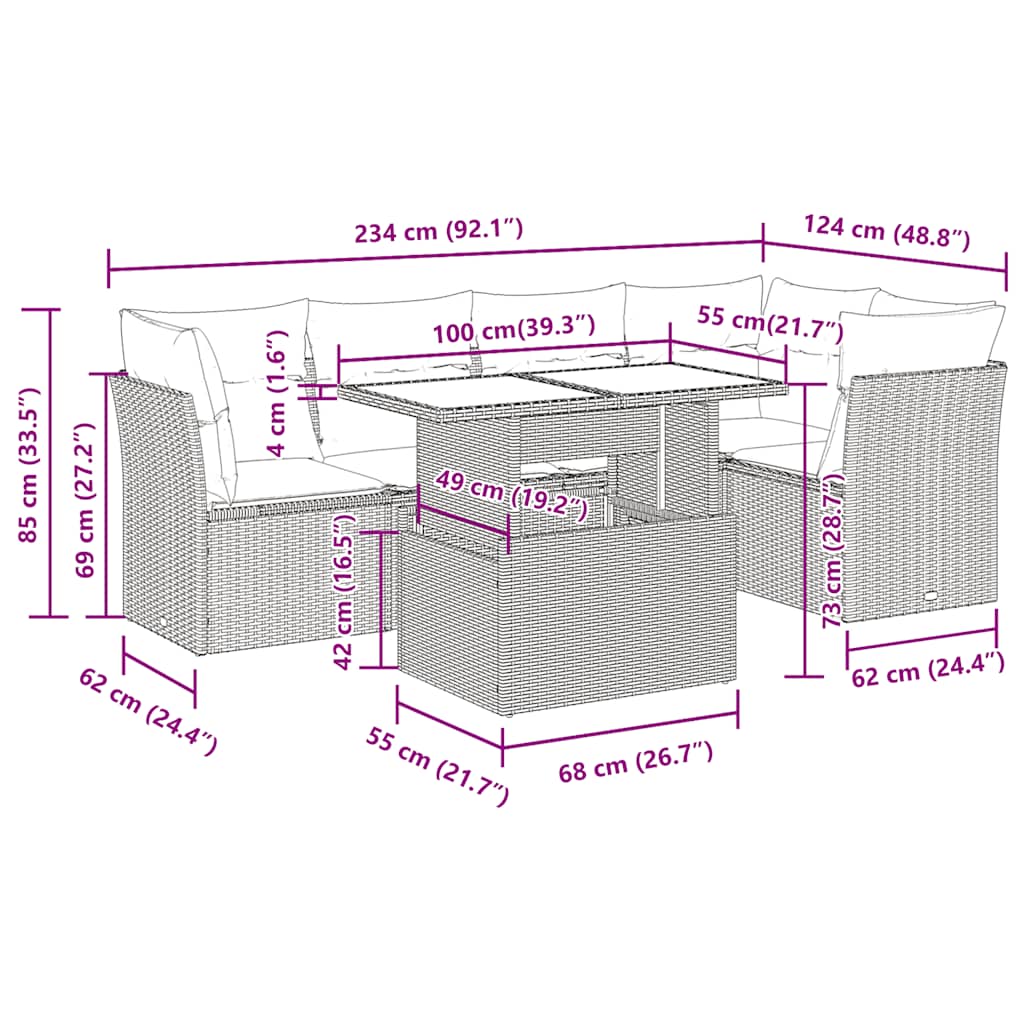 Diese Garten-Sofagarnitur ist die perfekte Ergänzung zu deinem Garten, deiner Terrasse oder deinem Innenhof. Sie bietet einen bequemen und einladenden Platz, um mit Familie und Freunden zu plaudern oder dich einfach nur zu entspannen und das Leben im Freien zu genießen.Langlebiges Material: PE-Rattan, auch als Poly Rattan bekannt, ist ein robustes, pflegeleichtes synthetisches Material, das die Optik von natürlichem Rattan aufweist. Es kennzeichnet sich durch ein geringes Eigengewicht und lässt sich einfach reinigen. Aufgrund seiner Haltbarkeit und Witterungsbeständigkeit wird es häufig bei der Herstellung von Gartenmöbeln verwendet.Stauraum mit wasserfestem Beutel: Jedes Gartensofa verfügt über ein Staufach unter der Sitzfläche, das mit einem wasserfesten Beutel zur Aufbewahrung von Kissen, Spielzeug und anderen Gegenständen versehen ist. Die Kissen sind mit Bezügen versehen und lassen sich mit Klettverschlüssen fest und sicher an den Sofas befestigen.Abnehmbarer und waschbarer Bezug: Diese Sitzkissen verfügen über abnehmbare Bezüge für einfaches Waschen und Pflegen.Modulares Design: Dank des modularen Designs lassen sich die Gartenmöbel völlig flexibel und einfach umstellen, um deinen Außenbereich ganz individuell zu gestalten.Gut zu wissen:Wir empfehlen dir, deine Gartenmöbel mit einer wasserdichten Hülle zu schützen, um lange Zeit eine ansprechende Optik aufzuweisen.