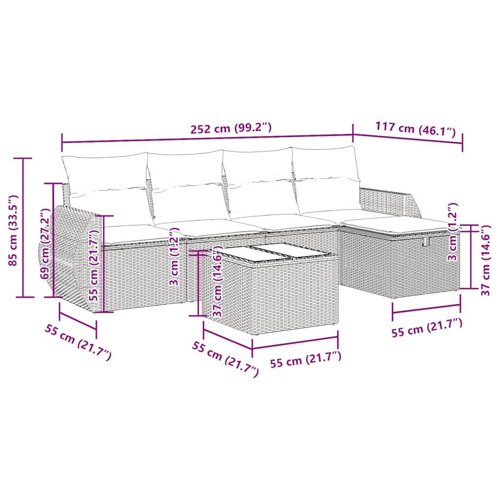 Diese Garten-Sofagarnitur ist die perfekte Ergänzung zu deinem Garten, deiner Terrasse oder deinem Innenhof. Sie bietet einen bequemen und einladenden Platz, um mit Familie und Freunden zu plaudern oder dich einfach nur zu entspannen und das Leben im Freien zu genießen. Langlebiges Material: PE-Rattan, auch als Poly Rattan bekannt, ist ein robustes, pflegeleichtes synthetisches Material, das die Optik von natürlichem Rattan aufweist. Es kennzeichnet sich durch ein geringes Eigengewicht und lässt sich einfach reinigen. Aufgrund seiner Haltbarkeit und Witterungsbeständigkeit wird es häufig bei der Herstellung von Gartenmöbeln verwendet.Stauraum mit wasserfestem Beutel: Jedes Gartensofa verfügt über ein Staufach unter der Sitzfläche, das mit einem wasserfesten Beutel zur Aufbewahrung von Kissen, Spielzeug und anderen Gegenständen versehen ist. Die Kissen sind mit Bezügen versehen und lassen sich mit Klettverschlüssen fest und sicher am Sofa befestigen.Vielseitiger Fußhocker: Der Hocker ist vielseitig einsetzbar und dient als bequeme Fußstütze beim Entspannen auf dem Sofa oder als zusätzlicher Sitzplatz in deinem Garten.Abnehmbarer und waschbarer Bezug: Diese Sitzkissen verfügen über abnehmbare Bezüge für einfaches Waschen und Pflegen.Robustes und stabiles Gestell: Der pulverbeschichtete Stahlgestell ist stark, stabil, langlebig sowie korrosions- und wetterbeständig, um eine lang anhaltende Leistung zu gewährleisten. Gut zu wissen:Wir empfehlen dir, deine Gartenmöbel mit einer wasserdichten Hülle zu schützen, um lange Zeit eine ansprechende Optik aufzuweisen.