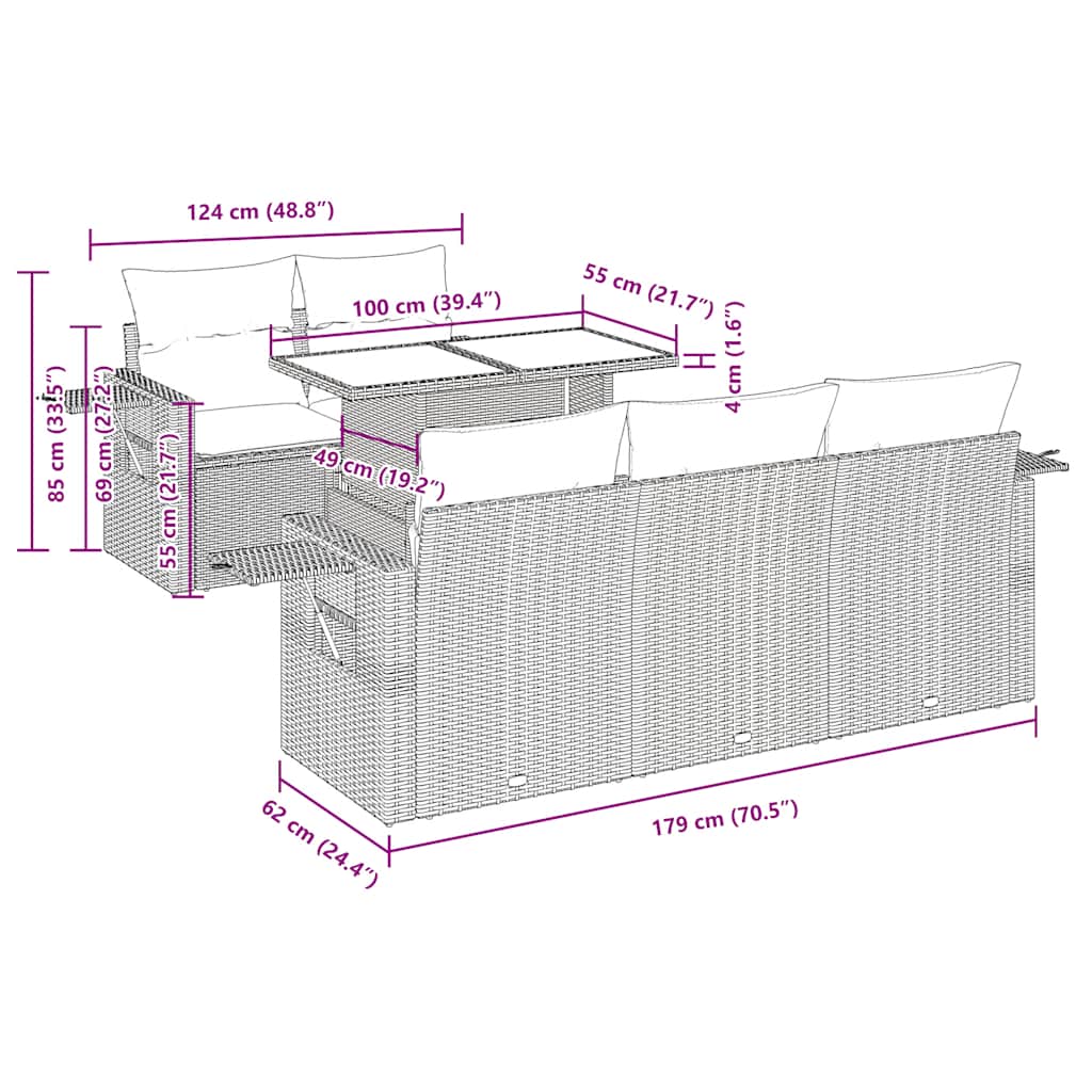 Diese Garten-Sofagarnitur ist die perfekte Ergänzung zu deinem Garten, deiner Terrasse oder deinem Innenhof. Sie bietet einen bequemen und einladenden Platz, um mit Familie und Freunden zu plaudern oder dich einfach nur zu entspannen und das Leben im Freien zu genießen.Langlebiges Material: PE-Rattan, auch als Poly Rattan bekannt, ist ein robustes, pflegeleichtes synthetisches Material, das die Optik von natürlichem Rattan aufweist. Es kennzeichnet sich durch ein geringes Eigengewicht und lässt sich einfach reinigen. Aufgrund seiner Haltbarkeit und Witterungsbeständigkeit wird es häufig bei der Herstellung von Gartenmöbeln verwendet.Stauraum mit wasserfestem Beutel: Jedes Gartensofa verfügt über ein Staufach unter der Sitzfläche, das mit einem wasserfesten Beutel zur Aufbewahrung von Kissen, Spielzeug und anderen Gegenständen versehen ist. Die Kissen sind mit Bezügen versehen und lassen sich mit Klettverschlüssen fest und sicher an den Sofas befestigen.Praktische Ablage: Dieses Gartensofa verfügt über eine klappbare Ablage mit Gasfeder, auf der du verschieden Sachen griffbereit aufbewahren kannst.Abnehmbarer und waschbarer Bezug: Diese Sitzkissen verfügen über abnehmbare Bezüge für einfaches Waschen und Pflegen.Modulares Design: Dank des modularen Designs lassen sich die Gartenmöbel völlig flexibel und einfach umstellen, um deinen Außenbereich ganz individuell zu gestalten.Gut zu wissen:Wir empfehlen dir, deine Gartenmöbel mit einer wasserdichten Hülle zu schützen, um lange Zeit eine ansprechende Optik aufzuweisen.