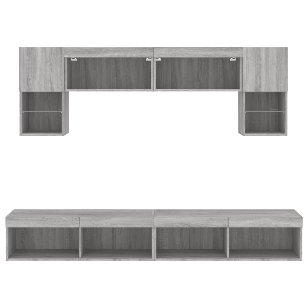Diese TV-Wandschränke bieten eine perfekte Lösung, um zusätzlichen Stauraum in deinem Wohnraum zu schaffen und für Ordnung zu sorgen. Robustes Material: Holzwerkstoff ist ein Material von außergewöhnlicher Qualität mit glatter Oberfläche, das sich durch Festigkeit, Stabilität und Feuchtigkeitsbeständigkeit auszeichnet.RGB-LED-Leuchten: Die Wohnwand ist mit lebendigen RGB-LED-Leuchten ausgestattet. Mit verschiedenen anpassbaren Menüs kannst du die Farbe der Lichter mühelos wechseln und sie sogar auf automatische Anpassung einstellen. Diese LED-Leuchten unterstreichen nicht nur den modernen Look des TV-Wandschranks, sondern tragen auch zu seiner trendigen Optik bei.Wandmontage: Der TV-Schrank lässt sich an der Wand montieren, um zusätzlichen Stauraum zu schaffen. Auf diese Weise kannst du deine Bodenfläche maximieren und für Ordnung im Raum sorgen.Reichlich Stauraum: Das TV-Wandschrank-Set bietet reichlich Platz, um Bücher, DVDs, Zeitschriften, Medien und andere Alltagsgegenstände übersichtlich und griffbereit zu verstauen.Vielseitiges Design: Du kannst den Schrank als TV-Schrank verwenden oder ihn im Arbeitszimmer an der Wand montieren, um Utensilien oder andere Gegenstände bequem aufzubewahren. Zudem verwandelt er eine leere Wand sofort in ein Design-Element. Gut zu wissen:Schrauben und Dübel für die Innenseite der Wand sind nicht enthalten. Wir empfehlen dir, Schrauben und Dübel zu finden und zu verwenden, die speziell für deine Wände geeignet sind. Wenn du dir nicht sicher bist, kannst du dich an einen Fachmann wenden. Bitte lies und befolge jeden Schritt in der Anleitung.Das Produkt verfügt über einen USB-Anschluss, für den eine zertifizierte 5V-USB-Stromquelle erforderlich ist (nicht im Lieferumfang enthalten).