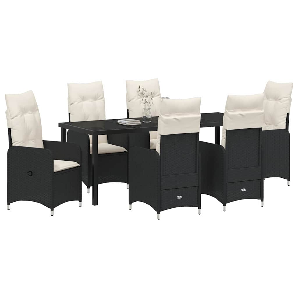 Dieses Set mit verstellbaren Gartenstühlen hebt das Chillen draußen auf ein neues Level mit schickem schwarzem Poly Rattan und bequemen cremeweißen Kissen, auf denen du gerne relaxen möchtest. Egal ob Sonnenbaden oder mit Freunden Spaß haben, das moderne Design verbindet Style mit Praktikabilität und ist ideal für Balkone, Gärten oder Terrassen. Verstellbare Rückenlehne: Super einfach mit einem praktischen Griff, damit du dich schnell zurücklehnen kannst. Dieser Stuhl gibt dir Halt für aufrechtes Sitzen oder entspanntes Relaxen. Dick gepolsterte Kissen: Diese luxuriösen, cremeweißen Kissen sind mega bequem, perfekt für lange Stunden draußen. Die Bezüge sind abnehmbar und waschbar, was die Reinigung zum Kinderspiel macht! Robuste Bauweise: Hergestellt aus qualitativ hochwertigem PE Rattan und stabil pulverbeschichtetem Stahl, ist dieses Stuhlset für die Outdoor-Nutzung gebaut und leicht zu reinigen! Stylische Ästhetik: Das schicke Schwarz sorgt für einen modernen Look und passt zu vielen Stilen, peppt deinen Garten, die Terrasse oder den Balkon auf. Leicht und tragbar: Trotz stabiler Bauweise sind diese Stühle leicht und einfach zu bewegen, wann immer du möchtest, um die perfekte Atmosphäre zu schaffen, ohne großen Aufwand.