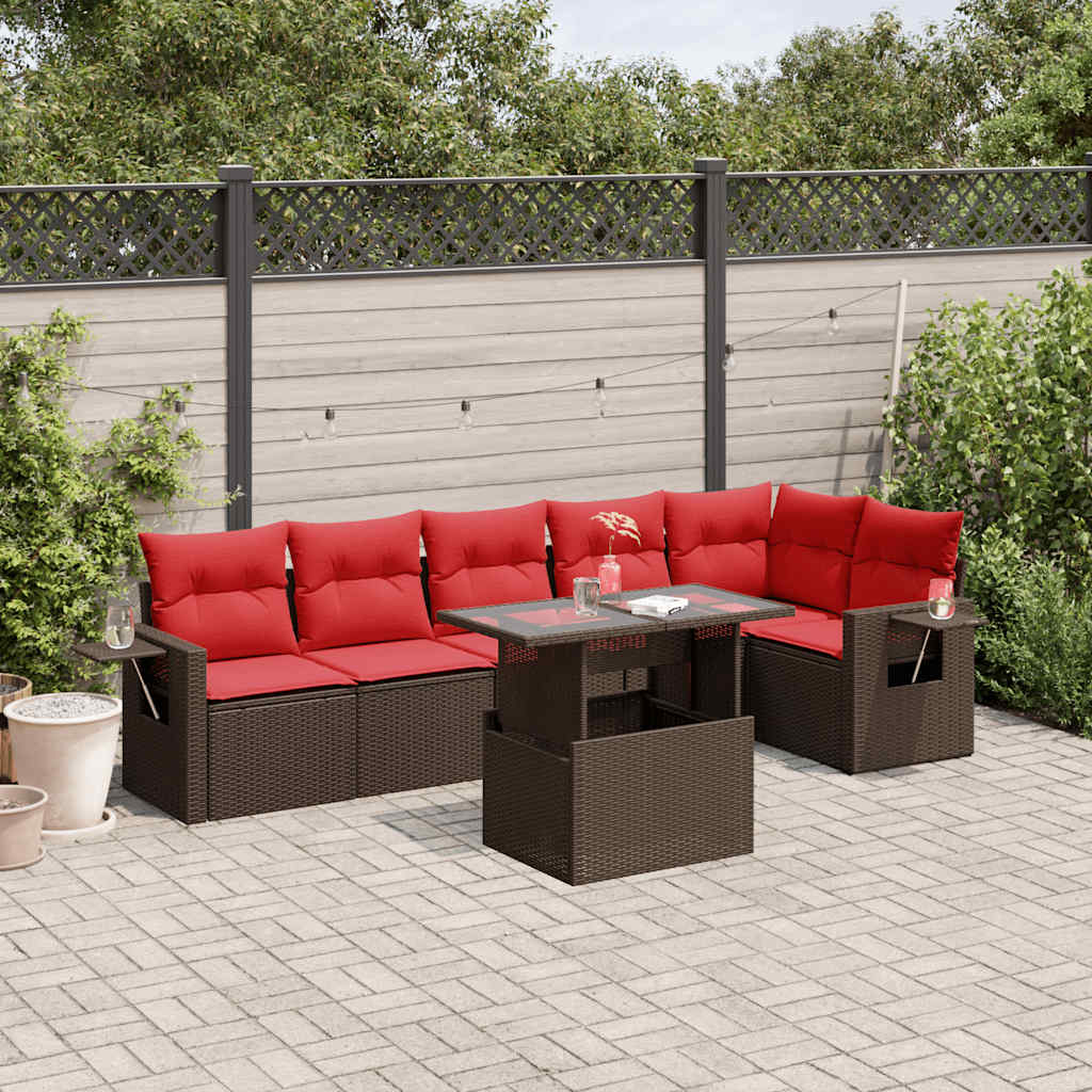 Dieses Gartensofa-Set ist die perfekte Ergänzung für Ihren Garten, Ihre Terrasse oder Ihren Innenhof und bietet einen komfortablen und einladenden Platz zum Plaudern mit Familie und Freunden oder einfach zum Entspannen und Genießen der Natur. Langlebiges Material: PE-Rattan, auch bekannt als Polyrattan, ist ein robustes, pflegeleichtes Kunststoffmaterial, das wie natürliches Rattan aussieht. Es ist leicht, einfach zu reinigen und wird aufgrund seiner Langlebigkeit und Wetterbeständigkeit häufig für Gartenmöbel verwendet.Verstellbare Tischplatte: Die Tischplatte kann angehoben werden, um den Tisch höher zu stellen, wodurch der Gartentisch von einem Couchtisch in einen Esstisch verwandelt wird. Er ist perfekt, um Gäste zu empfangen oder Mahlzeiten im Freien einzunehmen.Praktischer Beistelltisch: Dieses Gartenmöbel verfügt über klappbare Beistelltische mit Gasdruckfeder an den Armlehnen, die praktische Ablageflächen für wichtige Dinge bieten. Bequemes Sitzerlebnis: Diese Gartenmöbel mit dick gepolsterten Kissen bieten ein bequemes Sitzerlebnis.Modulares Design: Dieses Gartenmöbel-Set ist modular aufgebaut und daher völlig flexibel und leicht zu bewegen, sodass Sie Ihre Gartenmöbel individuell zusammenstellen können. Gut zu wissen:Damit Ihre Gartenmöbel lange schön bleiben, empfehlen wir Ihnen, sie mit einer wasserdichten Abdeckung zu schützen.
