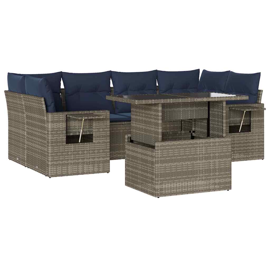 Dieses Gartensofa-Set ist die perfekte Ergänzung für Ihren Garten, Ihre Terrasse oder Ihren Innenhof und bietet einen komfortablen und einladenden Platz zum Plaudern mit Familie und Freunden oder einfach zum Entspannen und Genießen der Natur. Langlebiges Material: PE-Rattan, auch bekannt als Polyrattan, ist ein robustes, pflegeleichtes Kunststoffmaterial, das wie natürliches Rattan aussieht. Es ist leicht, einfach zu reinigen und wird aufgrund seiner Langlebigkeit und Wetterbeständigkeit häufig für Gartenmöbel verwendet.Verstellbare Tischplatte: Die Tischplatte kann angehoben werden, um den Tisch höher zu stellen, wodurch der Gartentisch von einem Couchtisch in einen Esstisch verwandelt wird. Er ist perfekt, um Gäste zu empfangen oder Mahlzeiten im Freien einzunehmen.Praktischer Beistelltisch: Dieses Gartenmöbel verfügt über klappbare Beistelltische mit Gasdruckfeder an den Armlehnen, die praktische Ablageflächen für wichtige Dinge bieten. Bequemes Sitzerlebnis: Diese Gartenmöbel mit dick gepolsterten Kissen bieten ein bequemes Sitzerlebnis.Modulares Design: Dieses Gartenmöbel-Set ist modular aufgebaut und daher völlig flexibel und leicht zu bewegen, sodass Sie Ihre Gartenmöbel individuell zusammenstellen können. Gut zu wissen:Damit Ihre Gartenmöbel lange schön bleiben, empfehlen wir Ihnen, sie mit einer wasserdichten Abdeckung zu schützen.