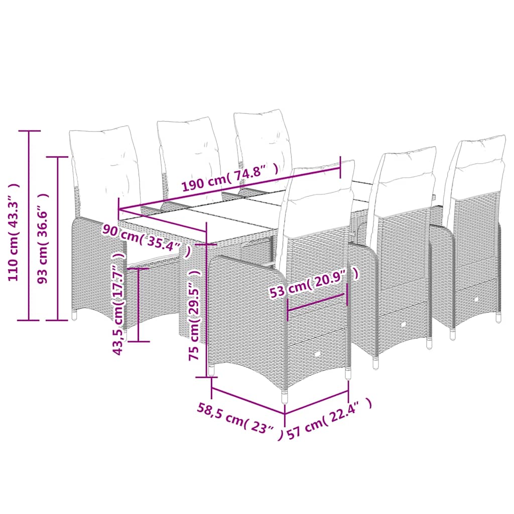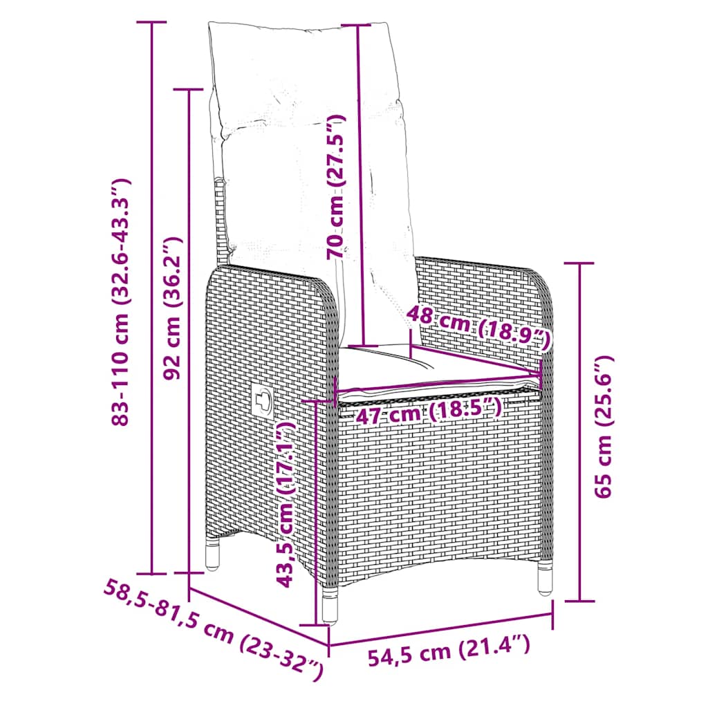 Genieße einen Kaffee oder unterhalte dich mit deiner Familie und deinen Freunden im Garten, Hinterhof oder auf dem Balkon mit diesem bequemen Bistro-Set! Langlebiges Material: PE-Rattan, auch als Poly Rattan bekannt, ist ein robustes, pflegeleichtes synthetisches Material, das die Optik von natürlichem Rattan aufweist. Es kennzeichnet sich durch ein geringes Eigengewicht und lässt sich einfach reinigen. Aufgrund seiner Haltbarkeit und Witterungsbeständigkeit wird es häufig bei der Herstellung von Gartenmöbeln verwendet.Verstellbare Rückenlehne: Der Gartensessel ist mit einem Griff versehen. So kannst du die Rückenlehne durch Ziehen des Griffs verstellen und sie danach schnell wieder in ihre ursprüngliche Position bringen.Bequemes Sitzerlebnis: Dieser Gartensessel mit dick gepolsterten Kissen bietet ein angenehmes Sitzgefühl.Abnehmbarer und waschbarer Bezug: Die Sitzkissen verfügen über abnehmbare Bezüge, die sich ganz einfach waschen und reinigen lassen. Dank der Klappen an der Rückseite können die Rückenkissen ganz einfach an den Rückenlehnen befestigt werden.Tischplatte aus Glas: Die Tischplatte des Gartentisches besteht aus starkem und langlebigem Hartglas, sodass sie leicht mit einem feuchten Tuch gereinigt werden kann und deinem Außenbereich einen Hauch von Eleganz verleiht. Gut zu wissen:Wir empfehlen dir, deine Gartenmöbel mit einer wasserdichten Hülle zu schützen, um lange Zeit eine ansprechende Optik aufzuweisen.