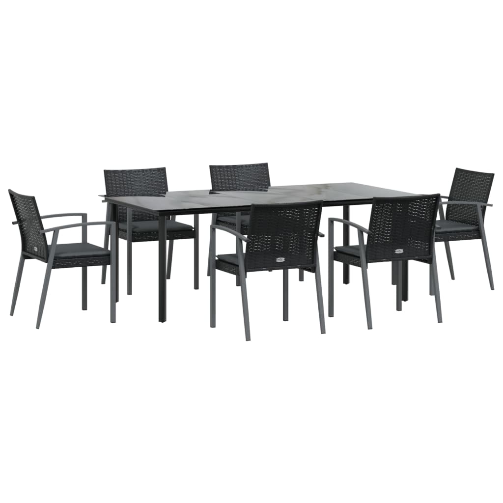 Mit ihrem stilvollen und praktischen Design wird diese Garten-Essgruppe ein echter Hingucker in deinem Garten, auf deiner Terrasse und in jedem anderen Außenbereich sein. Wetterfestes Material: PE-Rattan, auch als Poly Rattan bekannt, ist witterungsbeständig und pflegeleicht. Seine Oberfläche weist lange Zeit eine ansprechende Optik auf. Es bietet hohe Qualität, Komfort und einen ästhetisches Look.Robuster und stabiler Rahmen: Dank der Stahlrahmen ist die Essgruppe robust, stabil und für den täglichen Einsatz im Freien geeignet.Praktische Tischplatte: Die glatte Tischplatte besteht aus Hartglas, das sich leicht mit einem feuchten Tuch reinigen lässt. Zudem bietet sie den idealen Platz für Speisen, Getränke oder einige dekorative Gegenstände.Bequeme Sitzgelegenheit: Der Essstuhl ist mit Armlehnen versehen, um höchsten Sitzkomfort zu bieten. Zum hohen Sitzkomfort trägt auch das dick gepolsterte Kissen bei. Hinweis:Damit deine Gartenmöbel lange schön bleiben, empfehlen wir dir, sie mit einer wasserdichten Hülle zu schützen.