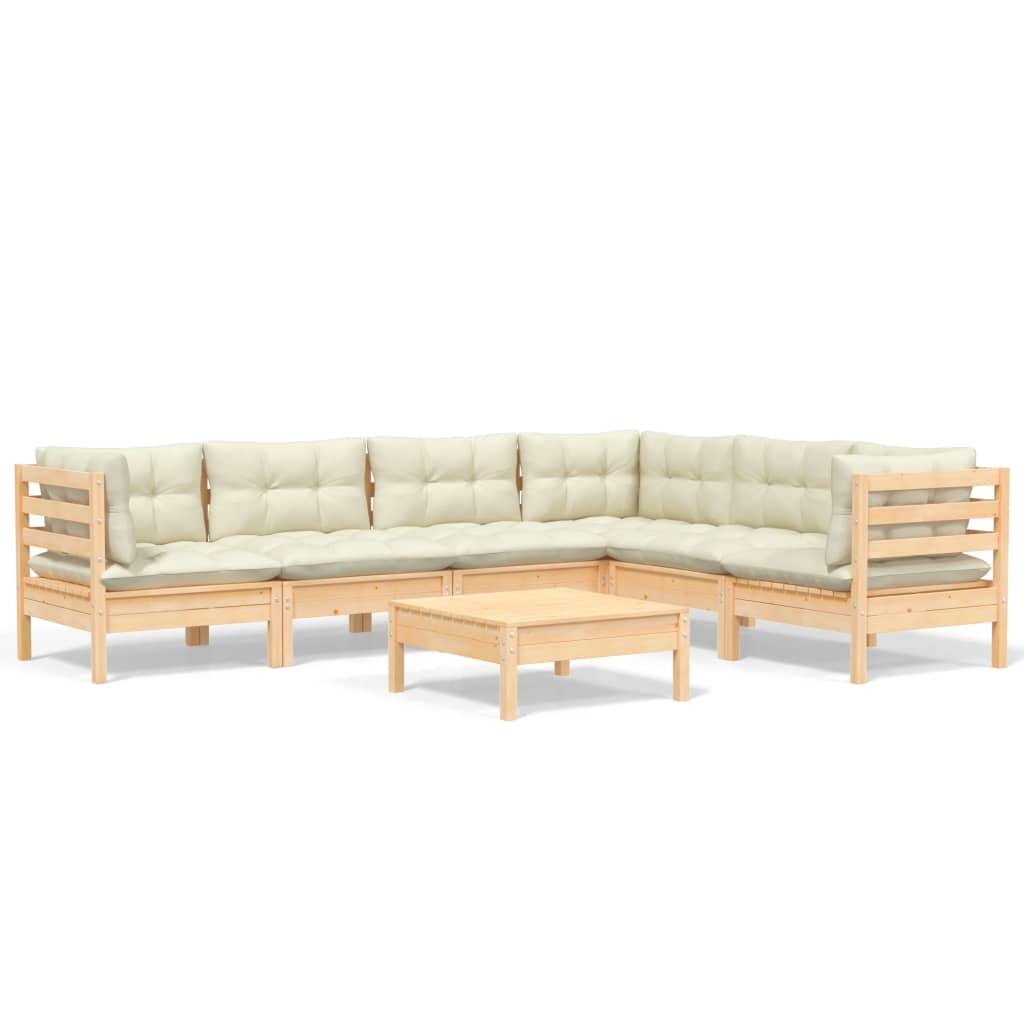 Diese Garten-Sitzgruppe ist eine ausgezeichnete Wahl, um sich zu entspannen und das Wetter zu genießen, ein Nickerchen zu machen oder mit Ihrer Familie oder Freunden zu plaudern. Das Terrassen-Lounge-Set ist aus massivem Kiefernholz gefertigt und dadurch robust und stabil. Die Kissen sorgen für zusätzlichen Komfort. Sie können es mit anderen modularen Segmenten kombinieren, um Ihr ganz persönliches Garten-Lounge-Set zusammenzustellen! HinweisUm die Lebensdauer Ihrer Gartenmöbel zu verlängern, empfehlen wir Ihnen, diese regelmäßig zu reinigen und bei Nichtgebrauch, wenn im Freien, abzudecken.Reinigung:Verwenden Sie eine milde SeifenlösungLagerung:Wenn möglich, an einem kühlen, trockenen Ort im Innenbereich lagern. Wenn das Produkt im Freien gelagert wird, schützen Sie es mit einer wasserdichten Abdeckung. Wischen und trocknen Sie das überschüssige Wasser oder den Schnee, nach Regen oder Schneefall. Sorgen Sie für eine ausreichende Luftzirkulation, um feuchtigkeitsbedingte Schäden zu vermeiden.