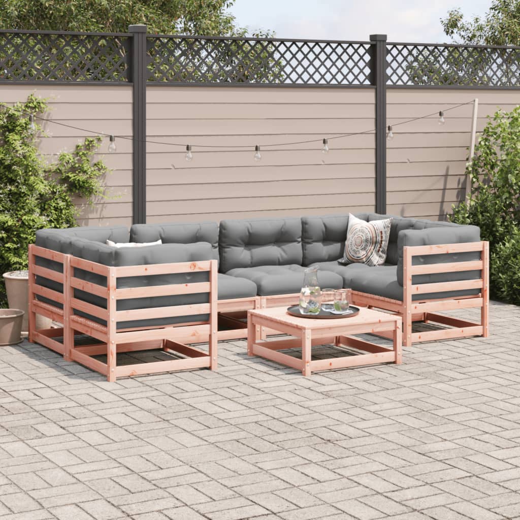 Diese Garten-Sofagarnitur ist die perfekte Ergänzung zu deinem Garten, deiner Terrasse oder deinem Innenhof. Sie bietet einen bequemen und einladenden Platz, um mit Familie und Freunden zu plaudern oder dich einfach nur zu entspannen und das Leben im Freien zu genießen. Robustes und langlebiges Material: Douglasienholz ist für seine Festigkeit und Haltbarkeit bekannt. Seine satte rotbraune Farbe und seine einzigartige Maserung verleihen ihm eine warme und natürliche Optik. Dank seiner ausgezeichneten Stabilität und Witterungsbeständigkeit eignet es sich ideal für die Herstellung von Innen- und Außenmöbeln.Gute Belüftung und Verhinderung von Ansammlungen: Das Latten-Design sorgt für eine optimale Luftzirkulation und verhindert effektiv, dass sich Wasser ansammelt, wodurch die Sitzfläche stets bequem trocken bleibt.Modulares Design: Dank des modularen Designs lassen sich die Gartenmöbel völlig flexibel und einfach umstellen, um deinen Außenbereich ganz individuell zu gestalten. Gut zu wissen:Wir empfehlen dir, deine Gartenmöbel mit einer wasserdichten Hülle zu schützen, um lange Zeit eine ansprechende Optik aufzuweisen.