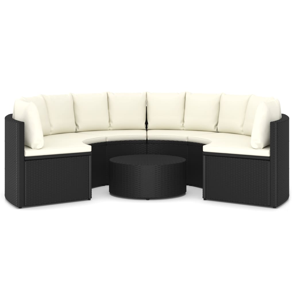 Schaffen Sie einen entspannenden Lounge-Bereich in Ihrem Garten mit diesem Lounge-Set aus Poly-Rattan. Diese gemütliche Garten-Sofagarnitur verfügt über einen pulverbeschichteten Stahlrahmen, der mit PE-Ratten überzogen ist, und ist daher robust und leicht zu reinigen. Die Sofateile bilden zusammen eine Fächerform und stellen eine perfekte Dekoration in Ihrem Außenbereich dar. Darüber hinaus bieten die dick gepolsterten Sitz- und Rückenkissen höchsten Sitzkomfort. Dank seiner Leichtbauweise lässt sich dieses Garten-Lounge-Set auch ganz einfach umstellen. Wichtiger Hinweis: Wir empfehlen, das Lounge-Set bei Regen, Schnee und Frost für eine lange Lebensdauer abzudecken.