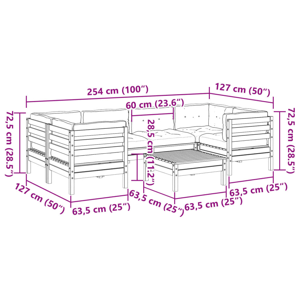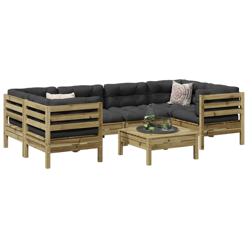 Diese Garten-Sofagarnitur ist die perfekte Ergänzung zu deinem Garten, deiner Terrasse oder deinem Innenhof. Sie bietet einen bequemen und einladenden Platz, um mit Familie und Freunden zu plaudern oder dich einfach nur zu entspannen und das Leben im Freien zu genießen. Robustes und langlebiges Material: Massives Kiefernholz ist für seine Stärke und Haltbarkeit bekannt. Seine gerade Maserung und die charakteristischen Aststellen tragen zu seinem rustikalen Charme bei. Es wurde mit einer Konservierungslösung imprägniert und mit Autoklaven behandelt, um eine höhere Verrottungs- und Witterungsbeständigkeit zu besitzen.Bequemes Sitzerlebnis: Dieser Gartensessel mit dick gepolsterten Kissen bietet ein angenehmes Sitzgefühl.Gute Belüftung und Verhinderung von Ansammlungen: Das Latten-Design sorgt für eine optimale Luftzirkulation und verhindert effektiv, dass sich Wasser ansammelt, wodurch die Sitzfläche stets bequem trocken bleibt.Modulares Design: Dank des modularen Designs lassen sich die Gartenmöbel völlig flexibel und einfach umstellen, um deinen Außenbereich ganz individuell zu gestalten. Gut zu wissen:Wir empfehlen dir, deine Gartenmöbel mit einer wasserdichten Hülle zu schützen, um lange Zeit eine ansprechende Optik aufzuweisen.