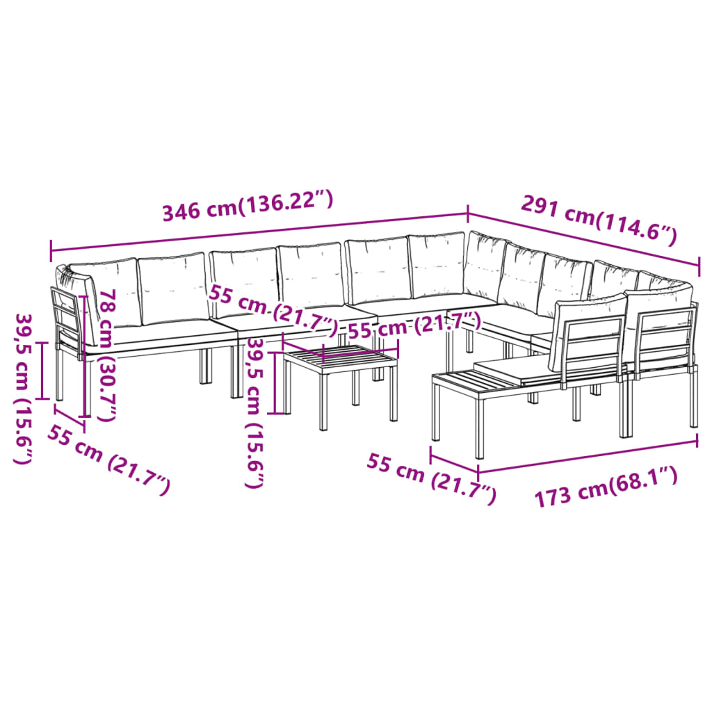 - Sitzgröße: 110 x 55 cm (B x T)