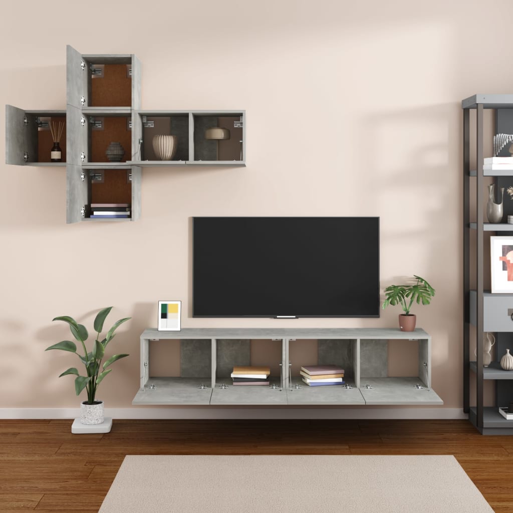 Dieses klassische TV-Schrank-Set wird mit seinem trendigen und dennoch praktischen Design zum Mittelpunkt deines Wohnzimmers. Robustes Material: Holzwerkstoff ist ein Material von außergewöhnlicher Qualität mit glatter Oberfläche, das sich durch Festigkeit, Stabilität und Feuchtigkeitsbeständigkeit auszeichnet.Reichlich Stauraum: Die TV-Möbel bieten reichlich Stauraum, um all deine Zeitschriften, DVDs und andere Gegenstände gut organisiert aufzubewahren.Wandmontage: Die TV-Konsole nimmt keine Bodenfläche ein, da sie sich einfach an der Wand befestigen lässt. Hinweis:Schrauben und Dübel für die Wandbefestigung sind nicht enthalten. Suchen und verwenden Sie die für Ihre Wände geeigneten Schrauben und Dübel. Wenn Sie unsicher sind, suchen Sie professionelle Hilfe. Lesen und befolgen Sie jeden Schritt der Anleitung sorgfältig.Jedes Produkt wird mit einer Montageanleitung in der Verpackung für eine einfache Montage geliefert.