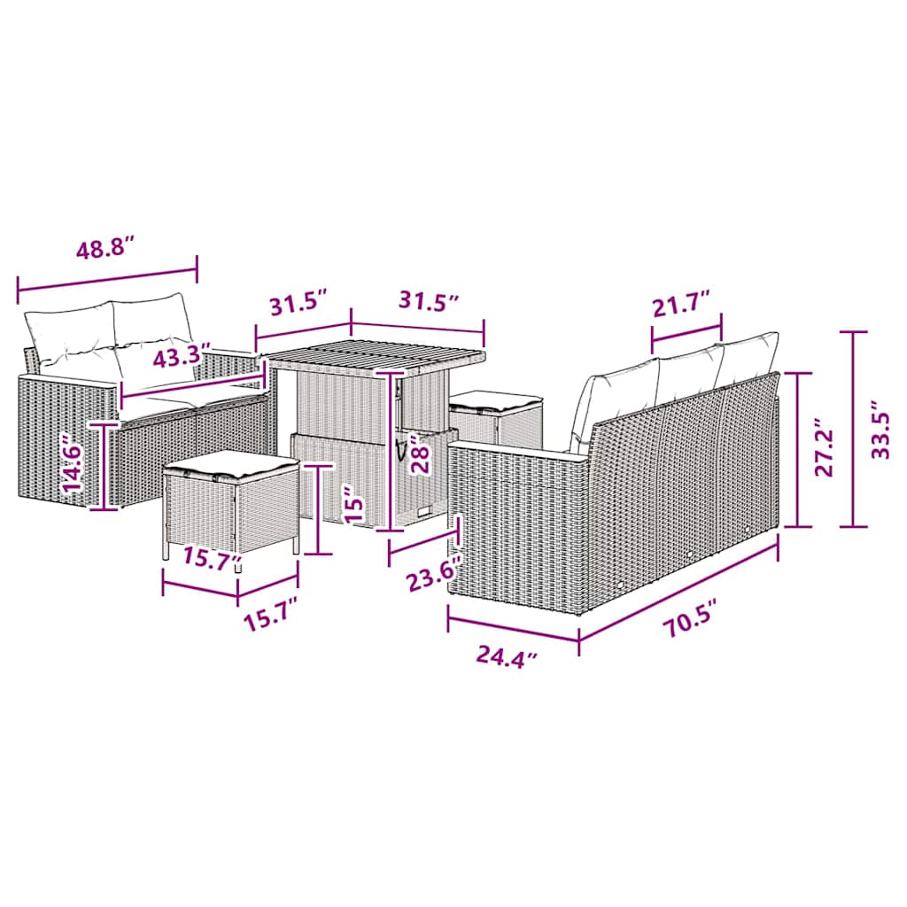 Dieses vidaXL 8-teilige Garten-Sofa-Set sorgt für elegantes Loungen im Freien mit seinem modernen Design und ist perfekt für Patios, Balkone oder Gärten geeignet. Aus strapazierfähigem Poly-Rattan und weichen Kissen hergestellt, schafft dieses Set eine einladende Atmosphäre für gesellige Abende oder entspannte Tage. Handgewebtes Design: Jedes Stück ist mit Liebe handgewebt und zeigt tolle Handwerkskunst und Detail, was deine Außendeko aufwertet. Modulare Vielseitigkeit: Stelle die Teile nach Bedarf um, sodass du die perfekte Anordnung für deinen Raum und Stil kreieren kannst. Robuste Materialien: Hergestellt aus hochwertigem synthetischem Poly-Rattan, hält dieses Set Sonne, Regen und Abnutzung stand, was sicherstellt, dass es langlebig ist und toll aussieht. Bequeme Kissen: Weiche, abnehmbare Kissen, die für den Außenbereich gedacht sind, bieten dir hohen Komfort, egal ob du Freunde empfängst oder einfach die Sonne genießt. Kompakte Sitzkapazität: Perfekt für Zusammenkünfte, bietet dieses Set bequem Platz für vier Erwachsene und ist ein toller Ort, um die Zeit im Freien zu genießen.