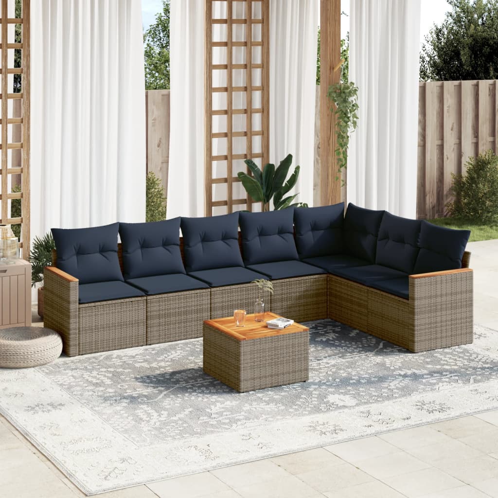 Dieses Gartensofa-Set ist die perfekte Ergänzung für Ihren Garten, Ihre Terrasse oder Ihren Innenhof und bietet einen komfortablen und einladenden Platz zum Plaudern mit Familie und Freunden oder einfach zum Entspannen und Genießen der Natur. Langlebiges Material: PE-Rattan, auch bekannt als Polyrattan, ist ein starkes, pflegeleichtes synthetisches Material, das wie natürliches Rattan aussieht. Es ist leicht, einfach zu reinigen und wird aufgrund seiner Langlebigkeit und Wetterbeständigkeit häufig für Gartenmöbel verwendet.Stabile und pflegeleichte Tischplatte: Dieser Gartentisch hat eine Tischplatte aus Akazienholz, die robust, langlebig und mit einem feuchten Tuch leicht zu reinigen ist.Abnehmbarer und waschbarer Bezug: Diese Sitzkissen verfügen über abnehmbare Bezüge zum einfachen Waschen und Pflegen.Robuster und stabiler Rahmen: Der pulverbeschichtete Stahlrahmen sorgt dafür, dass die Gartenmöbel für den täglichen Gebrauch im Freien robust und stabil sind.Modulares Design: Dieses Gartenmöbelset ist modular aufgebaut und daher völlig flexibel und leicht zu bewegen, sodass Sie Ihre Gartenmöbel individuell zusammenstellen können. Gut zu wissen:Damit Ihre Gartenmöbel schön bleiben, empfehlen wir Ihnen, sie mit einer wasserdichten Abdeckung zu schützen.