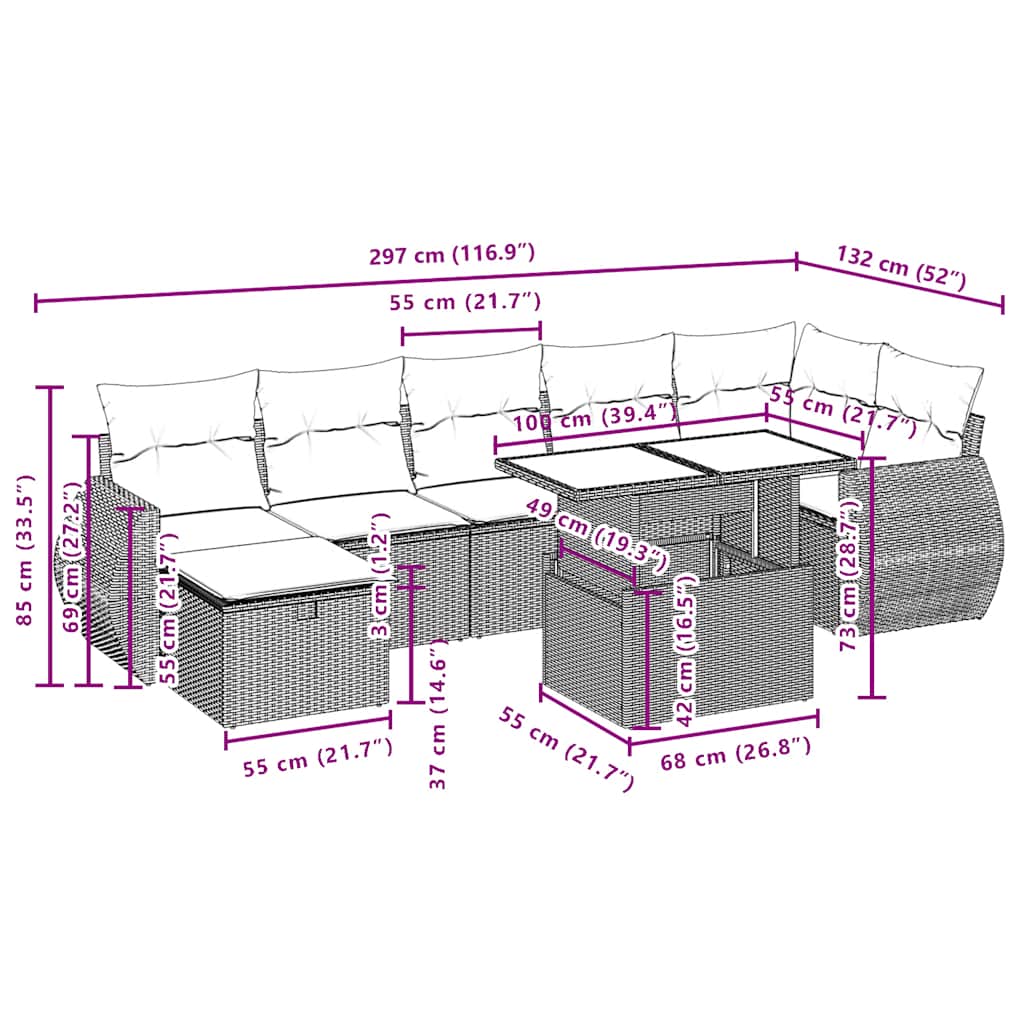 Dieses Gartensofa-Set ist die perfekte Ergänzung für Ihren Garten, Ihre Terrasse oder Ihren Innenhof und bietet einen komfortablen und einladenden Platz zum Plaudern mit Familie und Freunden oder einfach zum Entspannen und Genießen der Natur. Langlebiges Material: PE-Rattan, auch bekannt als Polyrattan, ist ein robustes, pflegeleichtes Kunststoffmaterial, das wie natürliches Rattan aussieht. Es ist leicht, einfach zu reinigen und wird aufgrund seiner Langlebigkeit und Wetterbeständigkeit häufig für Gartenmöbel verwendet.Verstellbare Tischplatte: Die Tischplatte kann angehoben werden, um den Tisch höher zu machen, wodurch der Gartentisch von einem Couchtisch in einen Esstisch verwandelt wird. Er eignet sich perfekt, um Gäste einzuladen oder draußen zu essen.Glastischplatte: Die Tischplatte des Gartentisches besteht aus starkem und langlebigem Hartglas, sodass sie sich leicht mit einem feuchten Tuch reinigen lässt und Ihrem Außenbereich einen Hauch von Eleganz verleiht.Abnehmbarer und waschbarer Bezug: Diese Sitzkissen verfügen über abnehmbare Bezüge, die sich leicht waschen und pflegen lassen.Modulares Design: Dieses Gartenmöbelset hat ein modulares Design, wodurch es völlig flexibel und leicht zu bewegen ist, sodass Sie eine individuelle Gartenmöbelanordnung erstellen können. Gut zu wissen:Damit Ihre Gartenmöbel schön bleiben, empfehlen wir Ihnen, sie mit einer wasserdichten Abdeckung zu schützen.