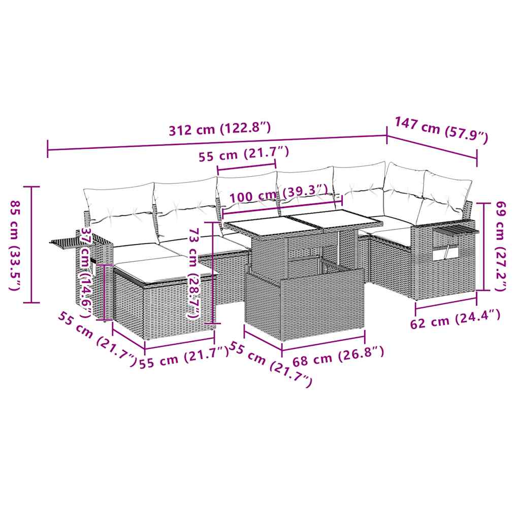 8-teiliges Gartensofa-Set mit Kissen, schwarzes Polyrattan