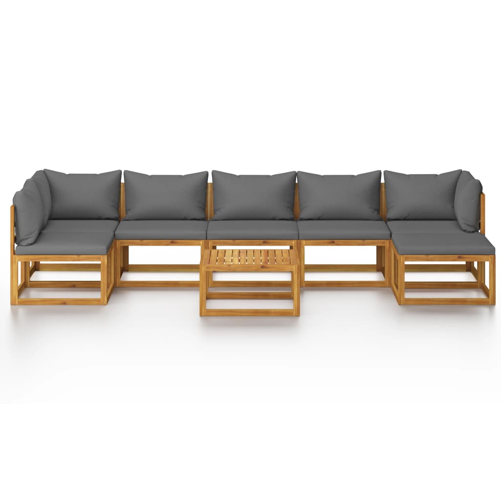 Dieses Lounge-Set aus Holz stellt eine perfekte Kombination aus Stil und Funktionalität dar. Auf dieser Sitzgruppe können Sie entspannende und beruhigende Momente mit Ihrer Familie und Freunden im Garten verbringen. Dank des massiven Akazienholzrahmens ist die Sofagarnitur stark, robust und langlebig; das mit Holzöl behandelte Gartenmöbel ist für den Außenbereich geeignet. Die abnehmbaren Sitz- und Rückenpolster sind dick, um einen hohen Sitzkomfort zu bieten. Ein Couchtisch mit einzigartigem Lattenrost-Design ist ebenfalls dabei. Dank des modularen Aufbaus können alle Teile nach Bedarf angeordnet und angepasst werden. Dieses Lounge-Set wird sicherlich der Mittelpunkt Ihres Gartens oder Ihrer Terrasse sein.