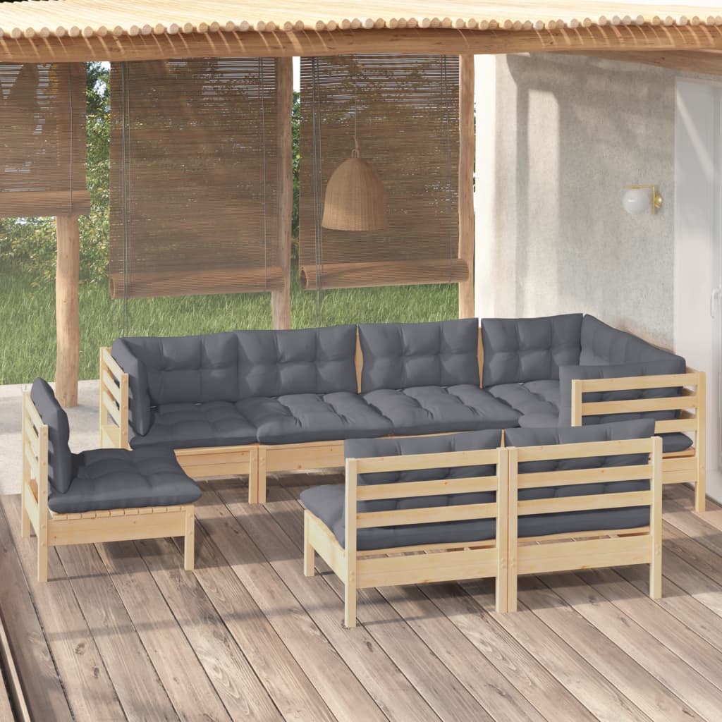 Diese Garten-Sitzgruppe ist eine ausgezeichnete Wahl, um sich zu entspannen und das Wetter zu genießen, ein Nickerchen zu machen oder mit Ihrer Familie oder Freunden zu plaudern. Das Terrassen-Lounge-Set ist aus massivem Kiefernholz gefertigt und dadurch robust und stabil. Die Kissen sorgen für zusätzlichen Komfort. Sie können es mit anderen modularen Segmenten kombinieren, um Ihr ganz persönliches Garten-Lounge-Set zusammenzustellen! HinweisUm die Lebensdauer Ihrer Gartenmöbel zu verlängern, empfehlen wir Ihnen, diese regelmäßig zu reinigen und bei Nichtgebrauch, wenn im Freien, abzudecken.Reinigung:Verwenden Sie eine milde Seifenlösung.Lagerung:Wenn möglich, an einem kühlen, trockenen Ort im Innenbereich lagern. Wenn das Produkt im Freien gelagert wird, schützen Sie es mit einer wasserdichten Abdeckung. Wischen und trocknen Sie das überschüssige Wasser oder den Schnee, nach Regen oder Schneefall. Sorgen Sie für eine ausreichende Luftzirkulation, um feuchtigkeitsbedingte Schäden zu vermeiden.