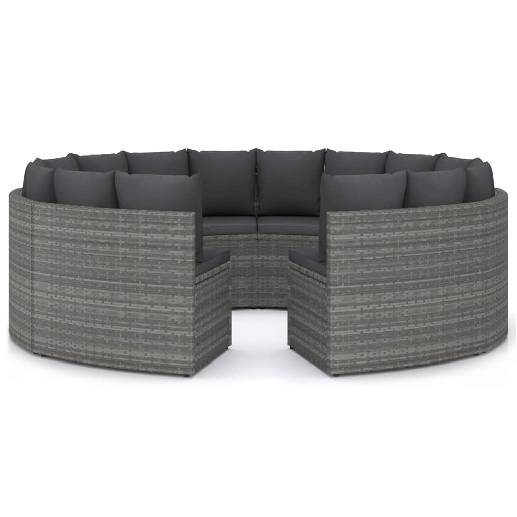 Schaffen Sie einen entspannenden Lounge-Bereich in Ihrem Garten mit diesem Lounge-Set aus Poly-Rattan. Diese gemütliche Garten-Sofagarnitur verfügt über einen pulverbeschichteten Stahlrahmen, der mit PE-Ratten überzogen ist, und ist daher robust und leicht zu reinigen. Die Sofateile bilden zusammen eine Fächerform und stellen eine perfekte Dekoration in Ihrem Außenbereich dar. Darüber hinaus bieten die dick gepolsterten Sitz- und Rückenkissen höchsten Sitzkomfort. Dank seiner Leichtbauweise lässt sich dieses Garten-Lounge-Set auch ganz einfach umstellen. Wichtiger Hinweis: Wir empfehlen, das Lounge-Set bei Regen, Schnee und Frost für eine lange Lebensdauer abzudecken.