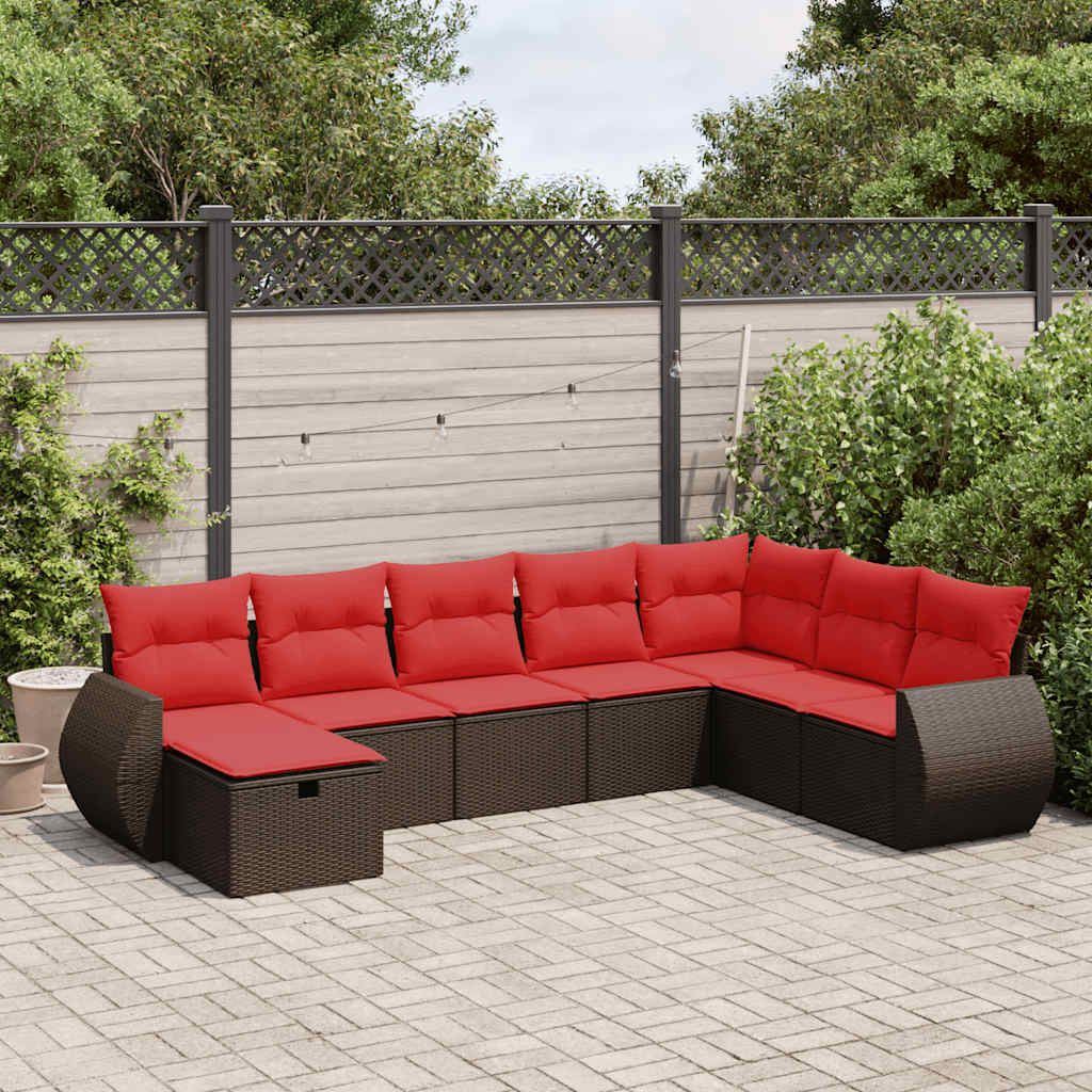 Diese Garten-Sofagarnitur ist die perfekte Ergänzung zu deinem Garten, deiner Terrasse oder deinem Innenhof. Sie bietet einen bequemen und einladenden Platz, um mit Familie und Freunden zu plaudern oder dich einfach nur zu entspannen und das Leben im Freien zu genießen. Langlebiges Material: PE-Rattan, auch als Poly Rattan bekannt, ist ein robustes, pflegeleichtes synthetisches Material, das die Optik von natürlichem Rattan aufweist. Es kennzeichnet sich durch ein geringes Eigengewicht und lässt sich einfach reinigen. Aufgrund seiner Haltbarkeit und Witterungsbeständigkeit wird es häufig bei der Herstellung von Gartenmöbeln verwendet.Stauraum mit wasserfestem Beutel: Jedes Gartensofa verfügt über ein Staufach unter der Sitzfläche, das mit einem wasserfesten Beutel zur Aufbewahrung von Kissen, Spielzeug und anderen Gegenständen versehen ist. Die Kissen sind mit Bezügen versehen und lassen sich mit Klettverschlüssen fest und sicher am Sofa befestigen.Vielseitiger Fußhocker: Der Hocker ist vielseitig einsetzbar und dient als bequeme Fußstütze beim Entspannen auf dem Sofa oder als zusätzlicher Sitzplatz in deinem Garten.Abnehmbarer und waschbarer Bezug: Diese Sitzkissen verfügen über abnehmbare Bezüge für einfaches Waschen und Pflegen.Robustes und stabiles Gestell: Der pulverbeschichtete Stahlgestell ist stark, stabil, langlebig sowie korrosions- und wetterbeständig, um eine lang anhaltende Leistung zu gewährleisten. Gut zu wissen:Wir empfehlen dir, deine Gartenmöbel mit einer wasserdichten Hülle zu schützen, um lange Zeit eine ansprechende Optik aufzuweisen.