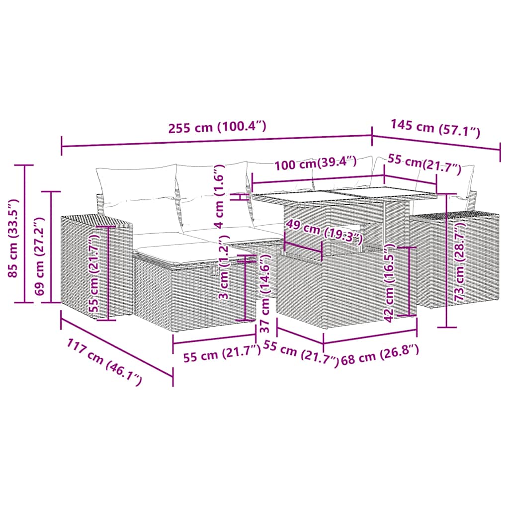 Diese Garten-Sofagarnitur ist die perfekte Ergänzung zu deinem Garten, deiner Terrasse oder deinem Innenhof. Sie bietet einen bequemen und einladenden Platz, um mit Familie und Freunden zu plaudern oder dich einfach nur zu entspannen und das Leben im Freien zu genießen.Langlebiges Material: PE-Rattan, auch als Poly Rattan bekannt, ist ein robustes, pflegeleichtes synthetisches Material, das die Optik von natürlichem Rattan aufweist. Es kennzeichnet sich durch ein geringes Eigengewicht und lässt sich einfach reinigen. Aufgrund seiner Haltbarkeit und Witterungsbeständigkeit wird es häufig bei der Herstellung von Gartenmöbeln verwendet.Stauraum mit wasserfestem Beutel: Jedes Gartensofa verfügt über ein Staufach unter der Sitzfläche, das mit einem wasserfesten Beutel zur Aufbewahrung von Kissen, Spielzeug und anderen Gegenständen versehen ist. Die Kissen sind mit Bezügen versehen und lassen sich mit Klettverschlüssen fest und sicher an den Sofas befestigen.Abnehmbarer und waschbarer Bezug: Diese Sitzkissen verfügen über abnehmbare Bezüge für einfaches Waschen und Pflegen.Modulares Design: Dank des modularen Designs lassen sich die Gartenmöbel völlig flexibel und einfach umstellen, um deinen Außenbereich ganz individuell zu gestalten.Gut zu wissen:Wir empfehlen dir, deine Gartenmöbel mit einer wasserdichten Hülle zu schützen, um lange Zeit eine ansprechende Optik aufzuweisen.
