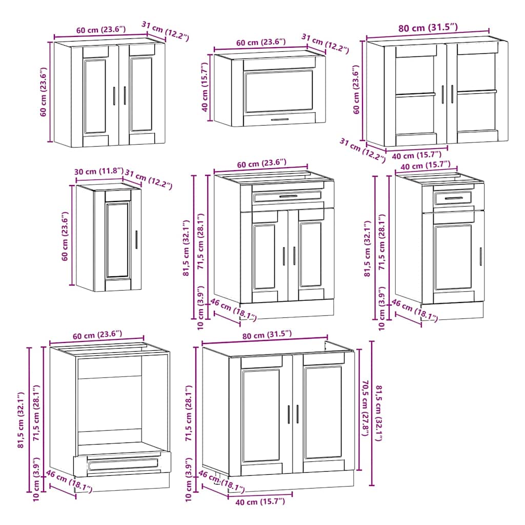 - 1 x Ofenschrank: 60 x 46 x 81,5 cm (B x T x H)