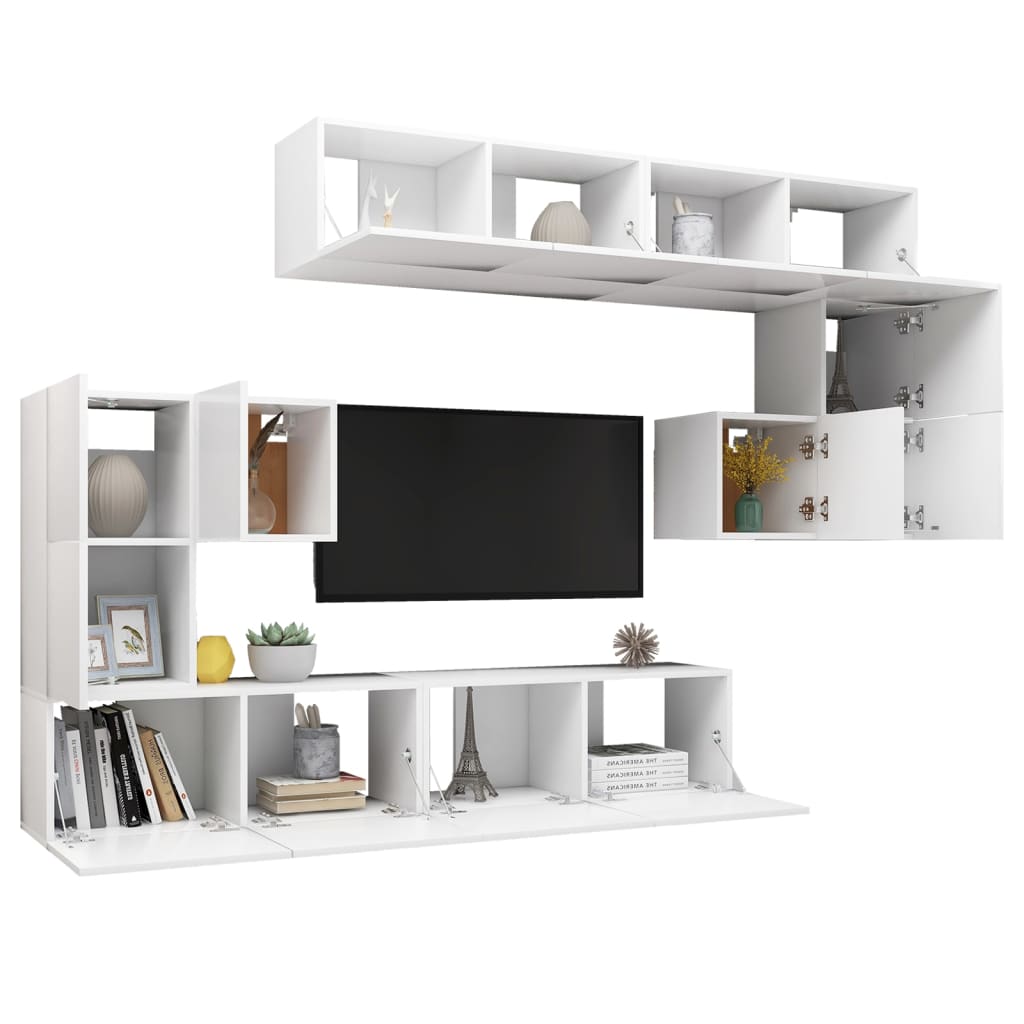 Dieses TV-Schrank-Set mit modernem Design und großem Stauraum wird zum Hingucker in Ihrem Wohnzimmer. Dieses hängende TV-Schrank-Set besteht aus Holzwerkstoff und ist daher robust und langlebig. Das Schrankset wird an der Wand befestigt und ist somit eine zeitlose Ergänzung für Ihr Zuhause. Das Wohnzimmermöbel-Set verfügt über mehrere Fächer, die es zu einem idealen Ort für die Aufbewahrung all Ihrer Zeitschriften, DVDs oder anderer Gegenstände machen. Dieses Hifi-Schrank-Set lässt sich leicht mit einem feuchten Tuch reinigen.