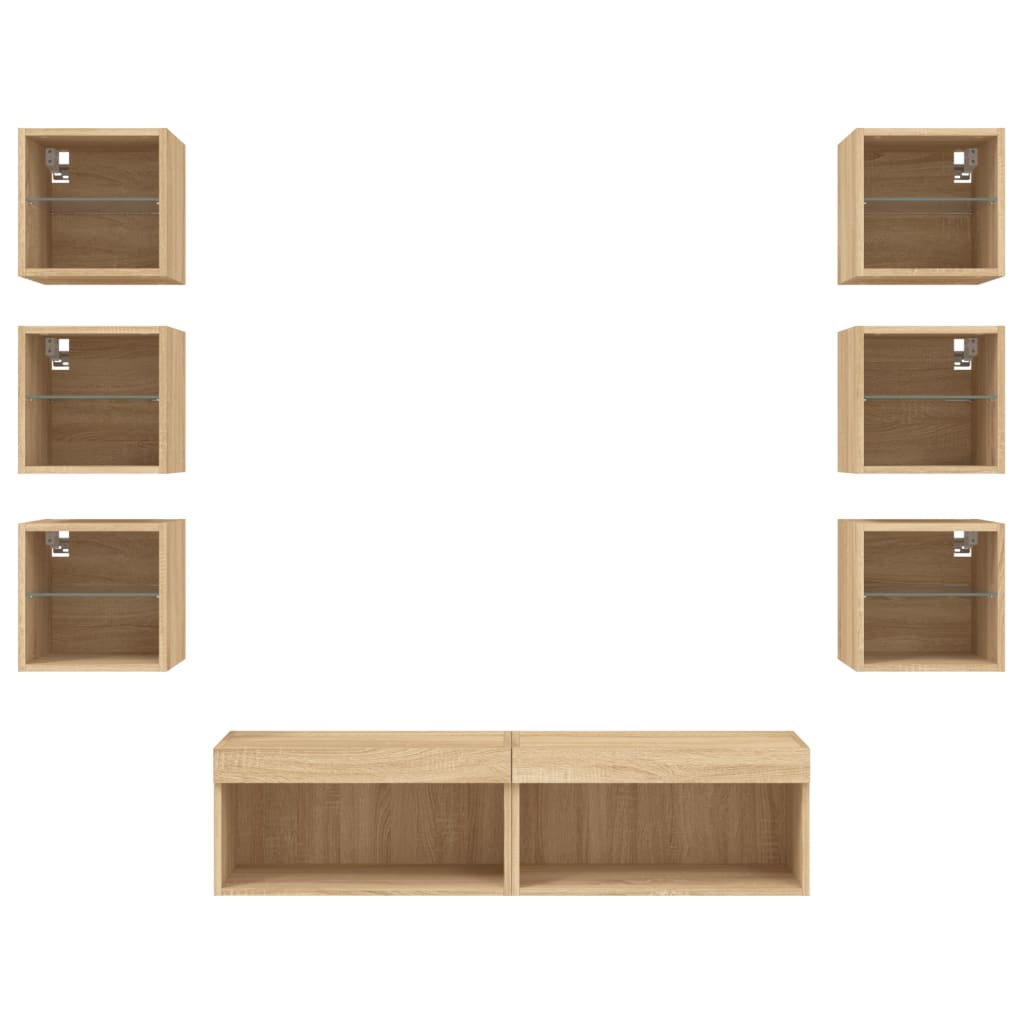 Diese TV-Wandschränke bieten eine perfekte Lösung, um zusätzlichen Stauraum in deinem Wohnraum zu schaffen und für Ordnung zu sorgen. Robustes Material: Holzwerkstoff ist ein Material von außergewöhnlicher Qualität mit glatter Oberfläche, das sich durch Festigkeit, Stabilität und Feuchtigkeitsbeständigkeit auszeichnet.RGB-LED-Leuchten: Die Wohnwand ist mit lebendigen RGB-LED-Leuchten ausgestattet. Mit verschiedenen anpassbaren Menüs kannst du die Farbe der Lichter mühelos wechseln und sie sogar auf automatische Anpassung einstellen. Diese LED-Leuchten unterstreichen nicht nur den modernen Look des TV-Wandschranks, sondern tragen auch zu seiner trendigen Optik bei.Wandmontage: Der TV-Schrank lässt sich an der Wand montieren, um zusätzlichen Stauraum zu schaffen. Auf diese Weise kannst du deine Bodenfläche maximieren und für Ordnung im Raum sorgen.Reichlich Stauraum: Das TV-Wandschrank-Set bietet reichlich Platz, um Bücher, DVDs, Zeitschriften, Medien und andere Alltagsgegenstände übersichtlich und griffbereit zu verstauen.Vielseitiges Design: Du kannst den Schrank als TV-Schrank verwenden oder ihn im Arbeitszimmer an der Wand montieren, um Utensilien oder andere Gegenstände bequem aufzubewahren. Zudem verwandelt er eine leere Wand sofort in ein Design-Element. Gut zu wissen:Schrauben und Dübel für die Innenseite der Wand sind nicht enthalten. Wir empfehlen dir, Schrauben und Dübel zu finden und zu verwenden, die speziell für deine Wände geeignet sind. Wenn du dir nicht sicher bist, kannst du dich an einen Fachmann wenden. Bitte lies und befolge jeden Schritt in der Anleitung.Das Produkt verfügt über einen USB-Anschluss, für den eine zertifizierte 5V-USB-Stromquelle erforderlich ist (nicht im Lieferumfang enthalten).
