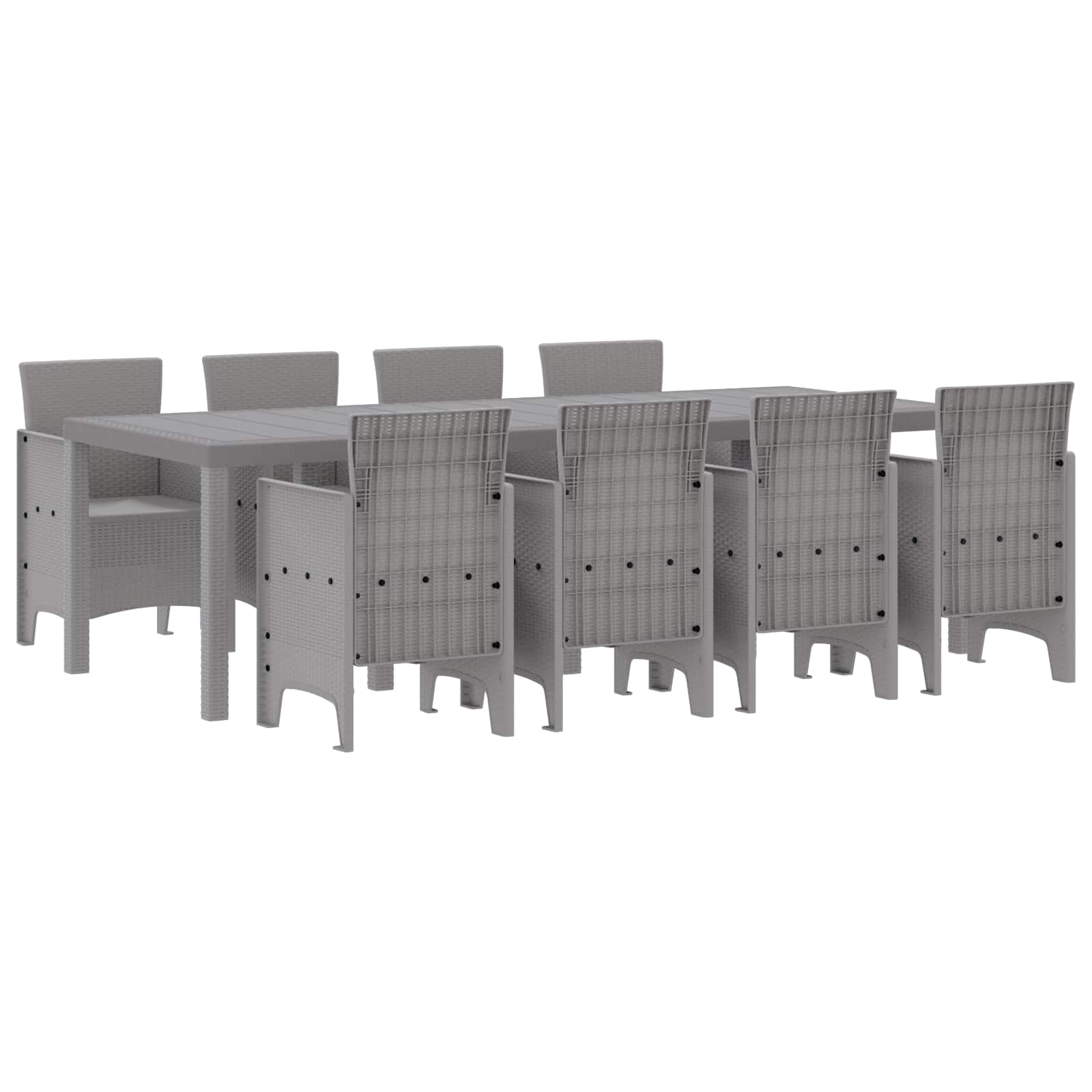 Dieses Garten-Essset ist perfekt fr alle, die gerne drauen sind. Es bietet genug Platz fr Familientreffen oder Partys. Aus robustem, synthetischen Poly-Rattan hergestellt, hlt es jedem Wetter stand und ist die praktische Wahl fr jede Saison. Das Set hat einen groen rechteckigen Tisch und zehn bequeme Sthle, die Platz fr bis zu zehn Personen bieten. Sein modernes graues Finish bringt frischen Wind in jeden Auenbereich. Ob auf deinem Balkon, Patio oder Deck, dieses Set ist ideal fr Essen im Freien und verwandelt deinen Auenbereich in einen lebhaften Treffpunkt fr schne Erinnerungen mit Freunden und Familie. Sthle und Tisch mssen zusammengebaut werden, aber das geht schnell und einfach, sodass du dein neues Essset bald genieen kannst.