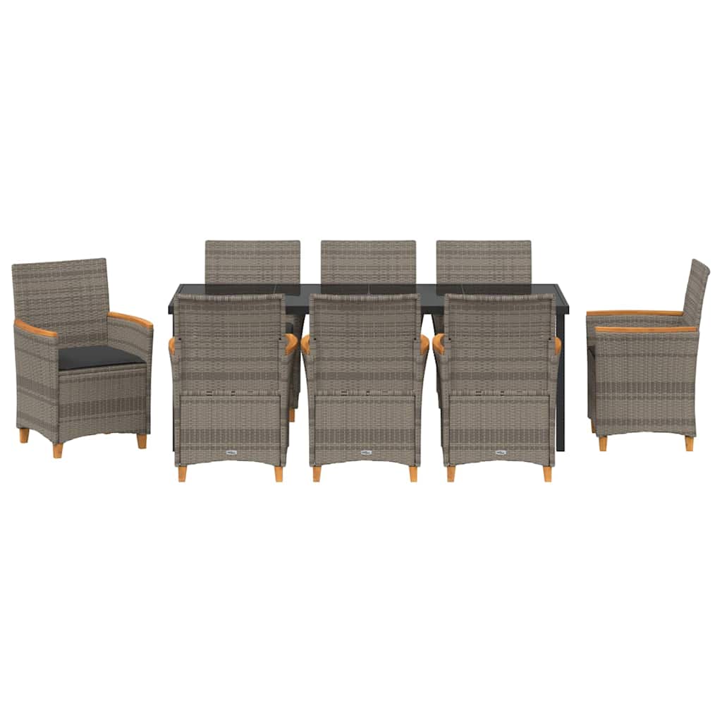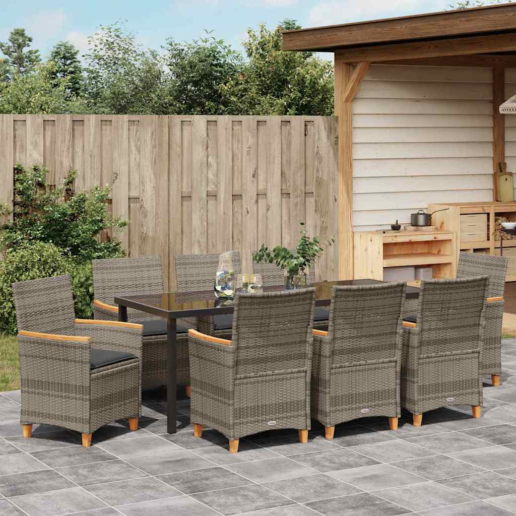 Schaffe eine tolle Atmosphäre im Freien mit dem vidaXL Gartenstuhl-Set mit Kissen. Aus stabilem PE-Rattan und solidem Akazienholz mit natürlichem Ölfinish, bieten diese Stühle sowohl Stil als auch Komfort und sind ideal zum Entspannen oder für gesellige Runden mit Freunden draußen. Haltbares Material: Die Stühle sind aus PE-Rattan, das robust und wetterfest ist und dabei gut aussieht. Das leichte Material sieht aus wie echtes Rattan und sorgt für Langlebigkeit in deinem Außenbereich. Bequeme Sitze: Jeder Stuhl hat dicke Kissen in Dunkelgrau, deren Bezüge du abnehmen und leicht reinigen kannst. Genieße besten Komfort, während du Zeit draußen verbringst. Stabiler Rahmen: Hergestellt aus pulverbeschichtetem Stahl, bieten diese Stühle ein vertrauliches Gefühl und sind ideal für den regelmäßigen Einsatz im Freien. Mit einem Gewichtslimit von bis zu 110 kg sind sie stabil und zuverlässig. Einfache Pflege: Die abnehmbaren Kissenbezüge machen die Reinigung ganz einfach und sorgen dafür, dass deine Outdoor-Sitzgruppen frisch und einladend bleiben. Stylisches modernes Design: Flexibel für verschiedene Außenstandorte, sehen diese Stühle klasse aus und passen perfekt zu lockeren Mahlzeiten oder intimen Zusammenkünften.