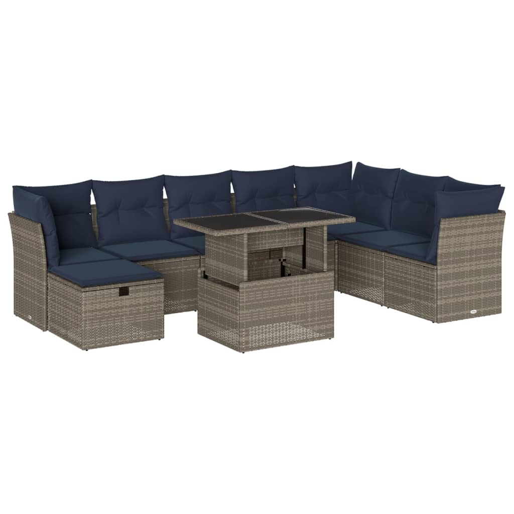 Dieses Gartensofa-Set ist die perfekte Ergänzung für Ihren Garten, Ihre Terrasse oder Ihren Innenhof und bietet einen komfortablen und einladenden Platz zum Plaudern mit Familie und Freunden oder einfach zum Entspannen und Genießen der Natur. Langlebiges Material: PE-Rattan, auch bekannt als Polyrattan, ist ein robustes, pflegeleichtes Kunststoffmaterial, das wie natürliches Rattan aussieht. Es ist leicht, einfach zu reinigen und wird aufgrund seiner Langlebigkeit und Wetterbeständigkeit häufig für Gartenmöbel verwendet.Verstellbare Tischplatte: Die Tischplatte kann angehoben werden, um den Tisch höher zu machen, wodurch der Gartentisch von einem Couchtisch in einen Esstisch verwandelt wird. Es ist perfekt, um Gäste zu empfangen oder draußen zu essen.Abnehmbarer und waschbarer Bezug: Diese Sitzkissen verfügen über abnehmbare Bezüge zum einfachen Waschen und Pflegen.Modulares Design: Dieses Gartenmöbelset hat ein modulares Design, wodurch es völlig flexibel und leicht zu bewegen ist, sodass Sie eine individuelle Gartenmöbelanordnung erstellen können. Gut zu wissen:Damit Ihre Gartenmöbel schön bleiben, empfehlen wir Ihnen, sie mit einer wasserdichten Abdeckung zu schützen.