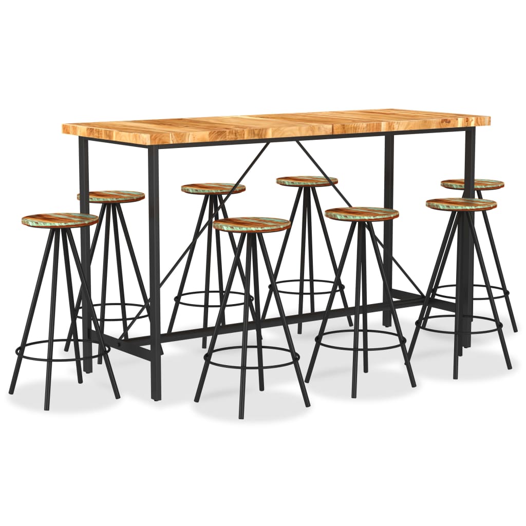 Dieses coole Bar-Set im angesagten Industrie-Look ist der Hingucker ? ob zu Hause, im Restaurant oder an der Bar. Der Bartisch besteht aus massivem Akazienholz, das robust, stabil und leicht zu reinigen ist. Er ist komplett handgefertigt und die schöne Holzmaserung macht jedes Möbelstück zu einem Unikat. Die starken Stahlbeine sorgen nicht nur für Robustheit und Langlebigkeit, sondern tragen auch zum eindrucksvollen Industrie-Stil des Bartisches bei. Die Barhocker sind aus massivem Altholz gefertigt, was bedeutet, dass sie die Eigenschaften verschiedener Holzarten wie Teak-, Mango-, Akazienholz usw. aufweisen. Altholz ist robust, stabil, langlebig und schön. Gebrauchsspuren verleihen jedem Stück ein einzigartiges Aussehen und die Stahlbeine tragen zum spektakulären Industriestil bei. Jeder Schritt des Fertigungsprozesses wird mit größter Sorgfalt durchgeführt, sei es Zusammensetzen, Polieren, Anstreichen oder Lackieren. Wichtiger Hinweis: Farben und Holzmaserung können von Artikel zu Artikel variieren, wodurch jedes Möbelstück einzigartig wird. Die Lieferung erfolgt in zufälliger Reihenfolge.