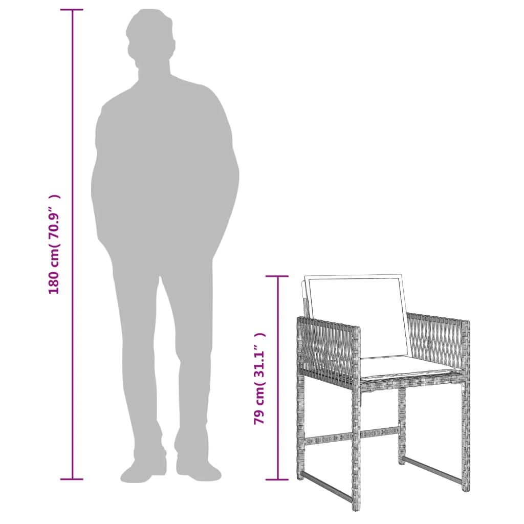 Diese Garten-Essgruppe ist eine ideale Wahl für Mahlzeiten im Freien oder einfach nur zum Entspannen im Garten, Hinterhof oder auf der Terrasse. Langlebiges Material: PE-Rattan, auch als Poly Rattan bekannt, ist ein robustes, pflegeleichtes synthetisches Material, das die Optik von natürlichem Rattan aufweist. Es kennzeichnet sich durch ein geringes Eigengewicht und lässt sich einfach reinigen. Aufgrund seiner Haltbarkeit und Witterungsbeständigkeit wird es häufig bei der Herstellung von Gartenmöbeln verwendet.Platzsparende Aufbewahrung: Dank der klappbaren Rückenlehnen lassen sich die Stühle unter dem Tisch verstauen, sodass die gesamte Essgruppe bei Nichtgebrauch eine platzsparende Würfelform bildet.Bequemes Sitzerlebnis: Dieser Gartensessel mit dick gepolsterten Kissen bietet ein angenehmes Sitzgefühl.Abnehmbarer und waschbarer Bezug: Die Sitzkissen verfügen über abnehmbare Bezüge, die sich ganz einfach waschen und reinigen lassen. Dank der Klappen an der Rückseite können die Kissen ganz einfach an den Rückenlehnen befestigt werden.Tischplatte aus Glas: Die Tischplatte des Gartentisches besteht aus starkem und langlebigem Hartglas, sodass sie leicht mit einem feuchten Tuch gereinigt werden kann und deinem Außenbereich einen Hauch von Eleganz verleiht. Gut zu wissen:Wir empfehlen dir, deine Gartenmöbel mit einer wasserdichten Hülle zu schützen, um lange Zeit eine ansprechende Optik aufzuweisen.