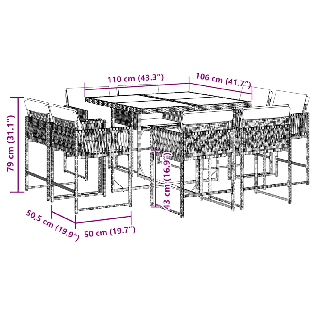 - Material: PE-Rattan, pulverbeschichteter Stahl, massives Akazienholz