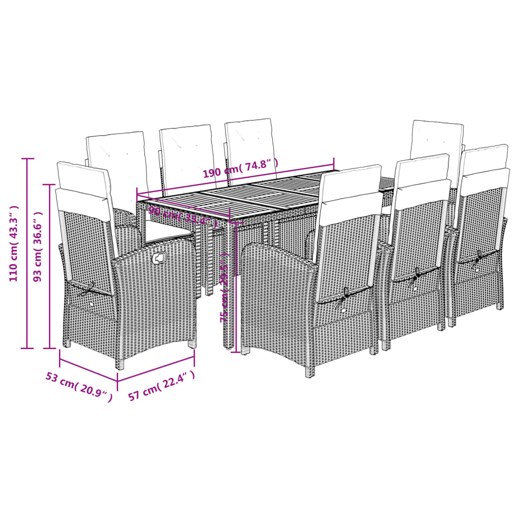 - Material: PE-Rattan, pulverbeschichteter Stahl, massives Akazienholz mit Ölfinish