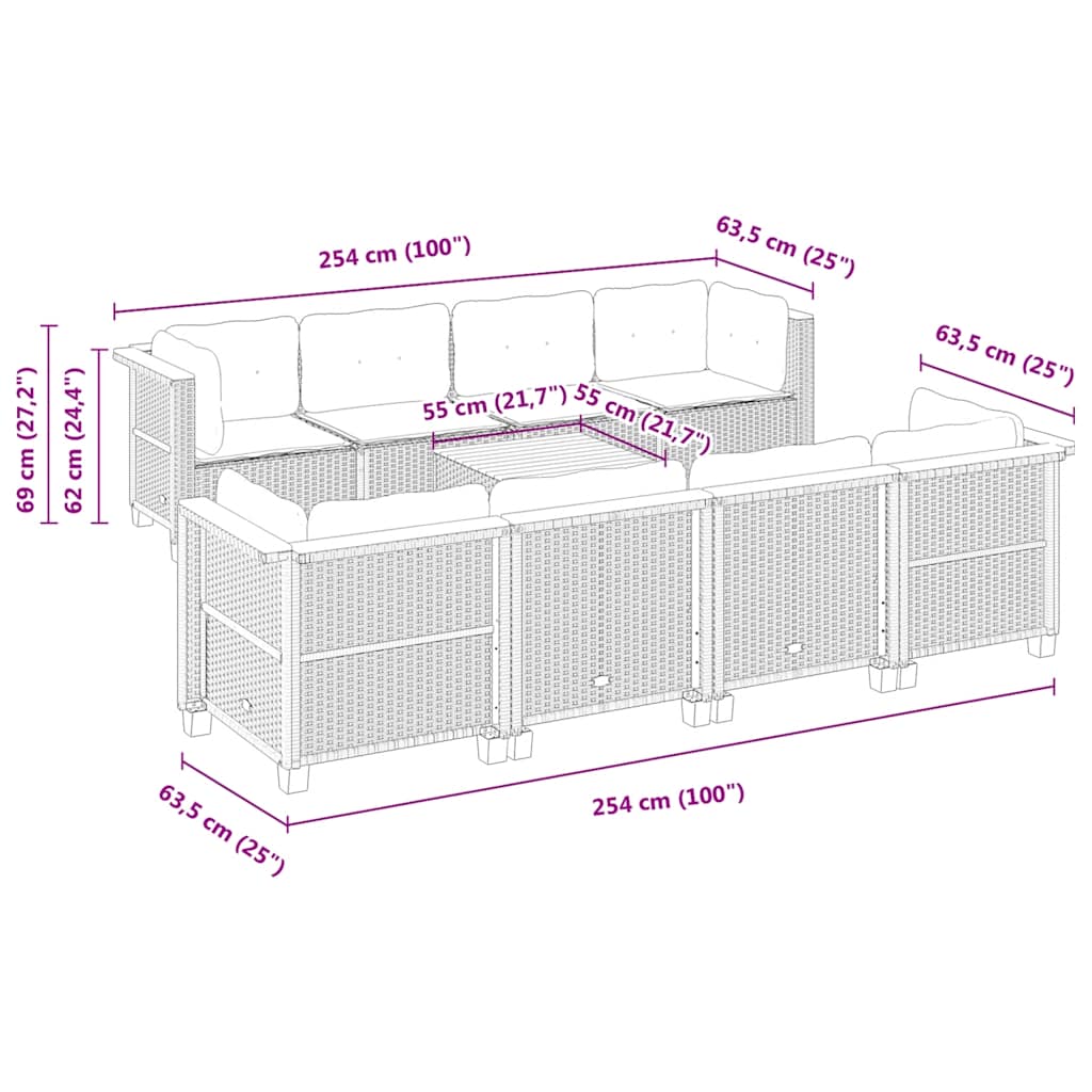Diese Garten-Sofagarnitur ist die perfekte Ergänzung zu deinem Garten, deiner Terrasse oder deinem Innenhof. Sie bietet einen bequemen und einladenden Platz, um mit Familie und Freunden zu plaudern oder dich einfach nur zu entspannen und das Leben im Freien zu genießen. Langlebiges Material: PE-Rattan, auch als Poly Rattan bekannt, ist ein robustes, pflegeleichtes synthetisches Material, das die Optik von natürlichem Rattan aufweist. Es kennzeichnet sich durch ein geringes Eigengewicht und lässt sich einfach reinigen. Aufgrund seiner Haltbarkeit und Witterungsbeständigkeit wird es häufig bei der Herstellung von Gartenmöbeln verwendet.Bequemes Sitzerlebnis: Dieser Gartensessel mit dick gepolsterten Kissen bietet ein angenehmes Sitzgefühl.Abnehmbarer und waschbarer Bezug: Diese Sitzkissen verfügen über abnehmbare Bezüge für einfaches Waschen und Pflegen.Stabile und pflegeleichte Tischplatte: Dieser Gartentisch besitzt eine Tischplatte aus Akazienholz, die robust und langlebig ist und sich leicht mit einem feuchten Tuch reinigen lässt.Modulares Design: Dank des modularen Designs lassen sich die Gartenmöbel völlig flexibel und einfach umstellen, um deinen Außenbereich ganz individuell zu gestalten. Gut zu wissen:Wir empfehlen dir, deine Gartenmöbel mit einer wasserdichten Hülle zu schützen, um lange Zeit eine ansprechende Optik aufzuweisen.