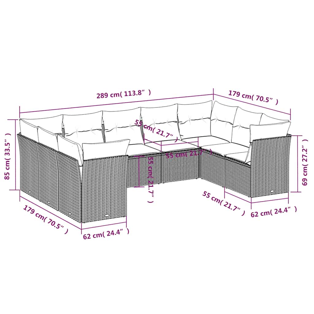 - 9 x Sitzkissen mit abnehmbarem und waschbarem Bezug