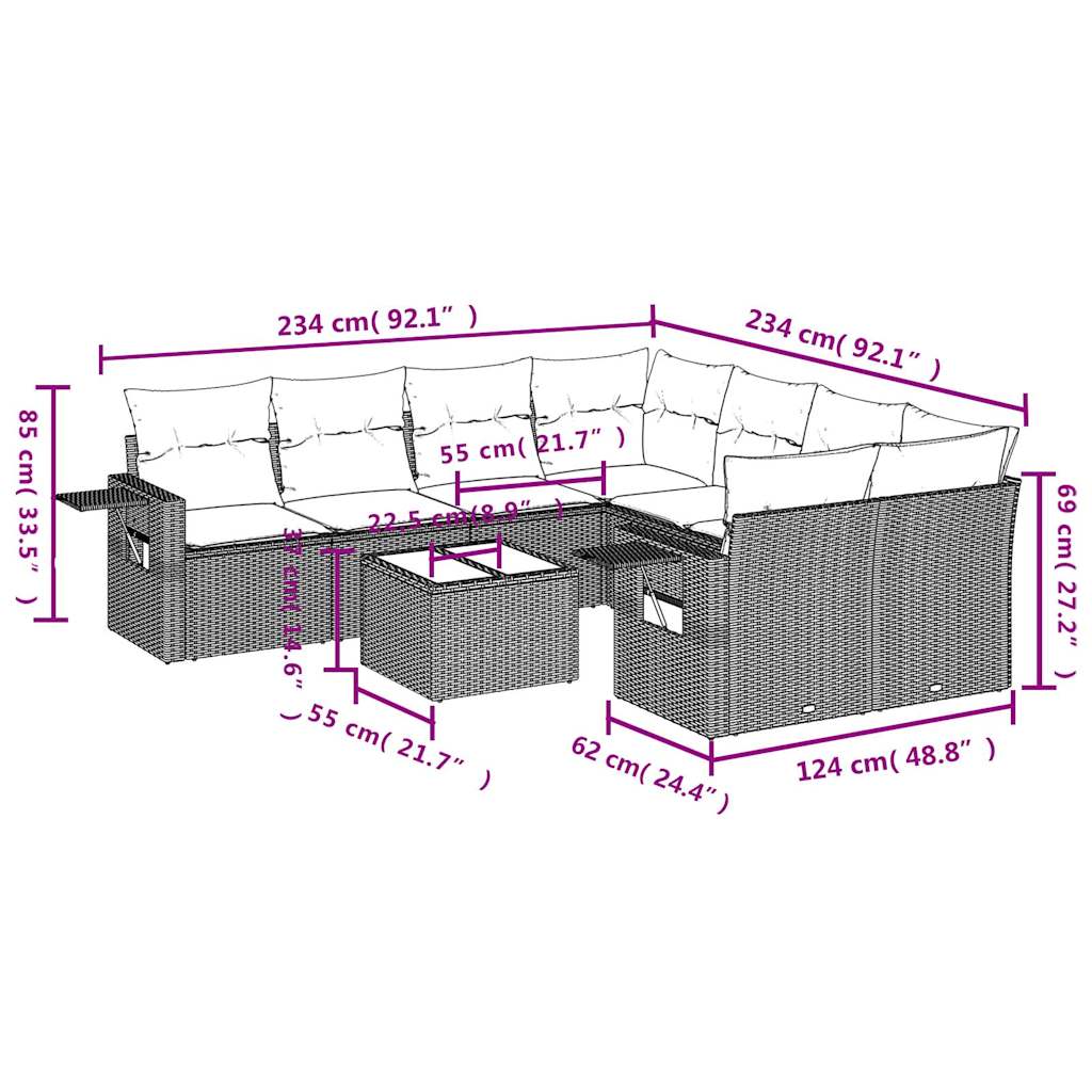 Diese Garten-Sofagarnitur ist die perfekte Ergänzung zu deinem Garten, deiner Terrasse oder deinem Innenhof. Sie bietet einen bequemen und einladenden Platz, um mit Familie und Freunden zu plaudern oder dich einfach nur zu entspannen und das Leben im Freien zu genießen. Langlebiges Material: PE-Rattan, auch als Poly Rattan bekannt, ist ein robustes, pflegeleichtes synthetisches Material, das die Optik von natürlichem Rattan aufweist. Es kennzeichnet sich durch ein geringes Eigengewicht und lässt sich einfach reinigen. Aufgrund seiner Haltbarkeit und Witterungsbeständigkeit wird es häufig bei der Herstellung von Gartenmöbeln verwendet.Stauraum mit wasserfestem Beutel: Das Gartensofa verfügen über ein Staufach unter der Sitzfläche, das mit einem wasserfesten Beutel zur Aufbewahrung von Kissen, Spielzeug und anderen Gegenständen versehen ist. Der Innenbeutel lässt sich mit Klettverschlüssen sicher und stabil an den Gartenmöbeln befestigen.Praktischer Beistelltisch: Dieses Gartensofa verfügt über klappbare Ablagen mit Gasfedern an den Armlehnen, auf denen du verschieden Sachen griffbereit aufbewahren kannst.Abnehmbarer und waschbarer Bezug: Diese Sitzkissen verfügen über abnehmbare Bezüge für einfaches Waschen und Pflegen.Modulares Design: Dank des modularen Designs lassen sich die Gartenmöbel völlig flexibel und einfach umstellen, um deinen Außenbereich ganz individuell zu gestalten. Gut zu wissen:Wir empfehlen dir, deine Gartenmöbel mit einer wasserdichten Hülle zu schützen, um lange Zeit eine ansprechende Optik aufzuweisen.
