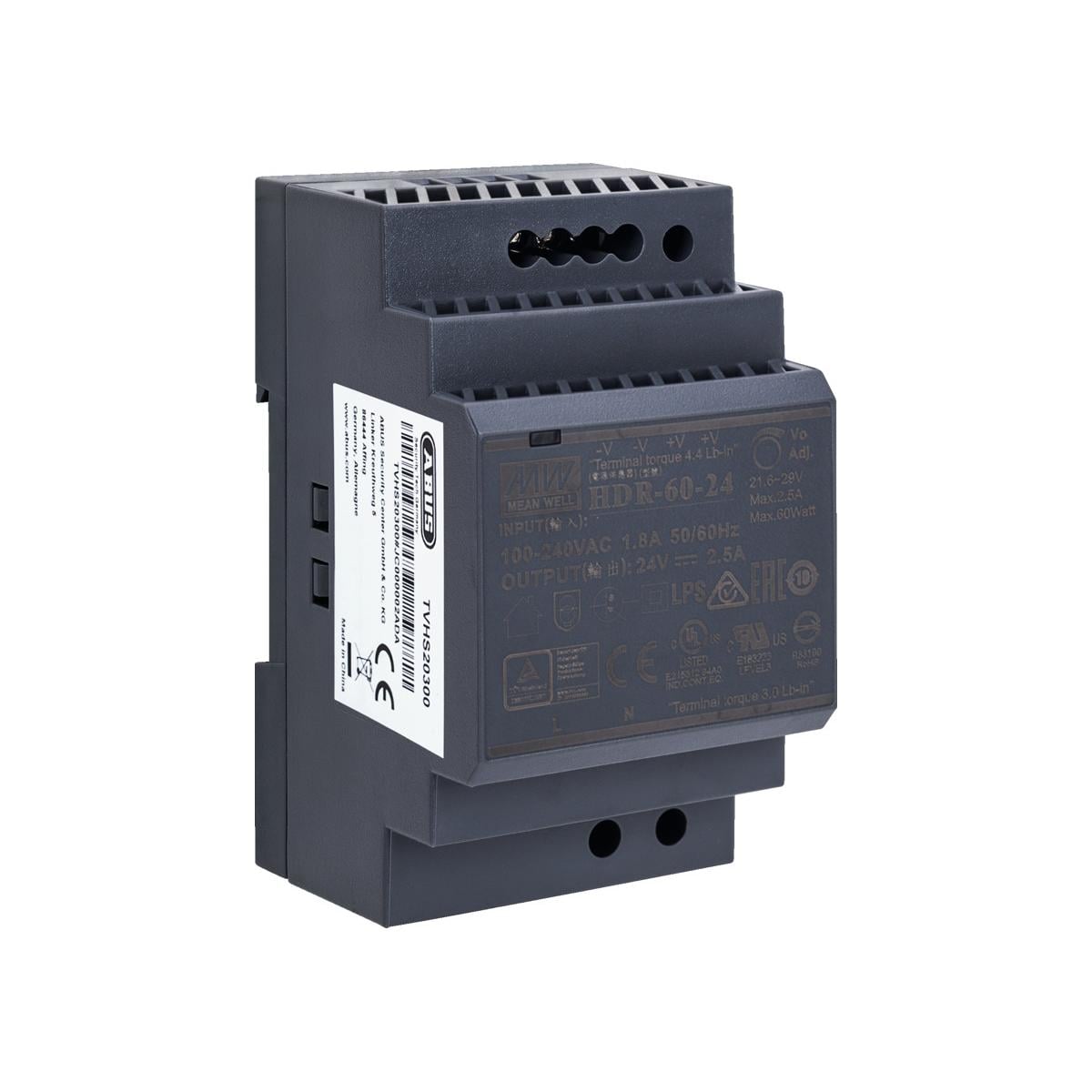 Mit dem Netzteil wird die ModuVis 2-Draht Verteiler-Einheit TVHS20310 mit 24 Volt Gleichstrom versorgt. Es ist für die einfache Anbringung in einem Schalt- oder Verteilerkasten mittels Hutschiene vorgesehen.