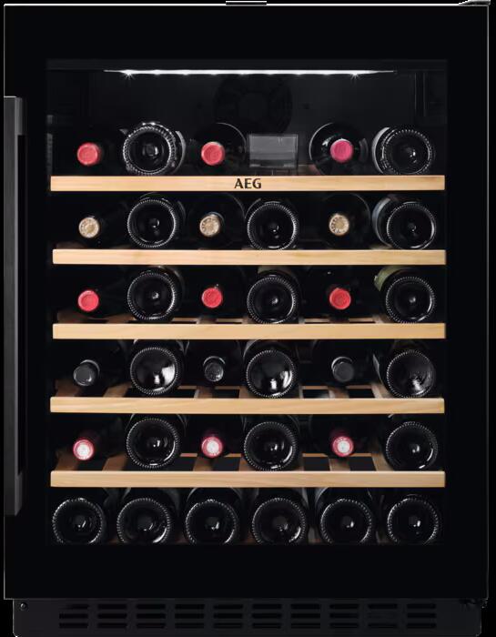 AEG AWUS052B5B 5000 Weintemperierschrank, 59,5 cm breit, 52 Standardweinflaschen, 6 Holzablagen, schwarz