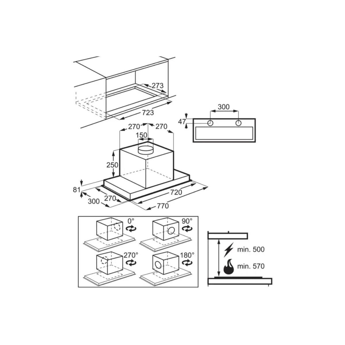 AEG DGE5861HM Lüfterbaustein, 77cm breit, Abluft/Umluft möglich, 3 Leistungsstufen, 1 Intensivstufe, Hob²Hood-Funktion, Edelstahl